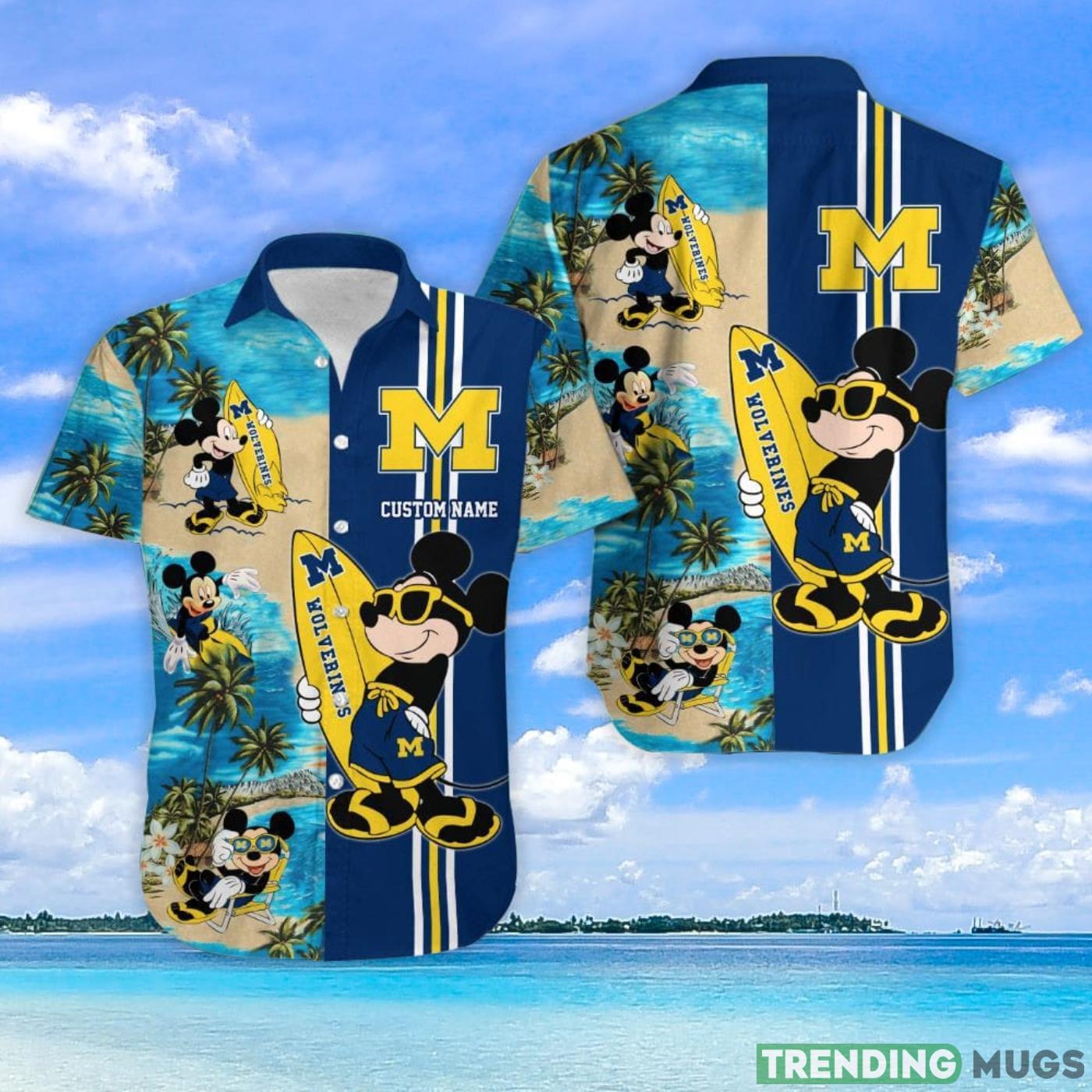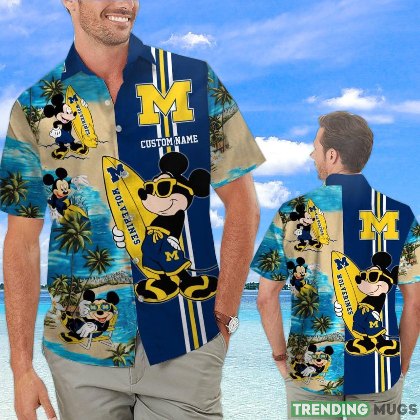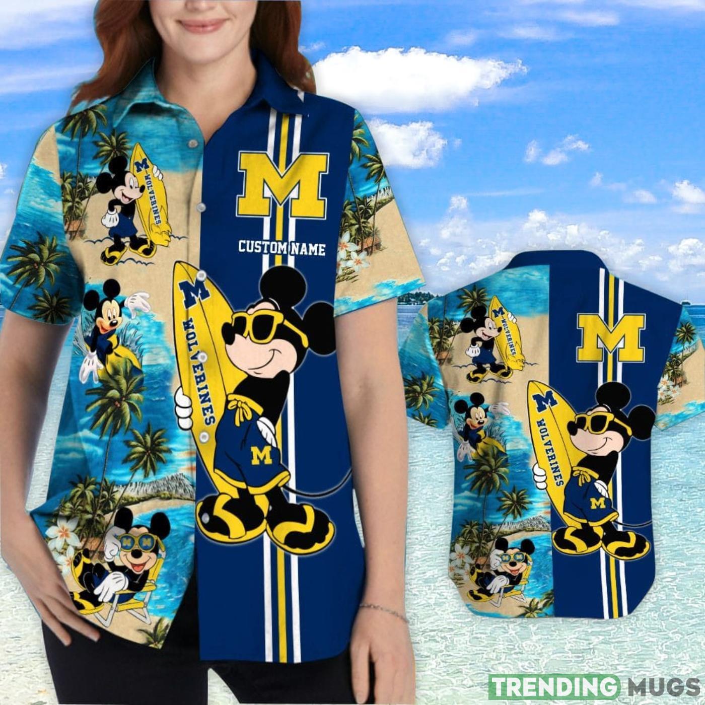 Michigan Wolverines Mickey Surfing Lover Custom Name Hawaiian Shirt Details:
