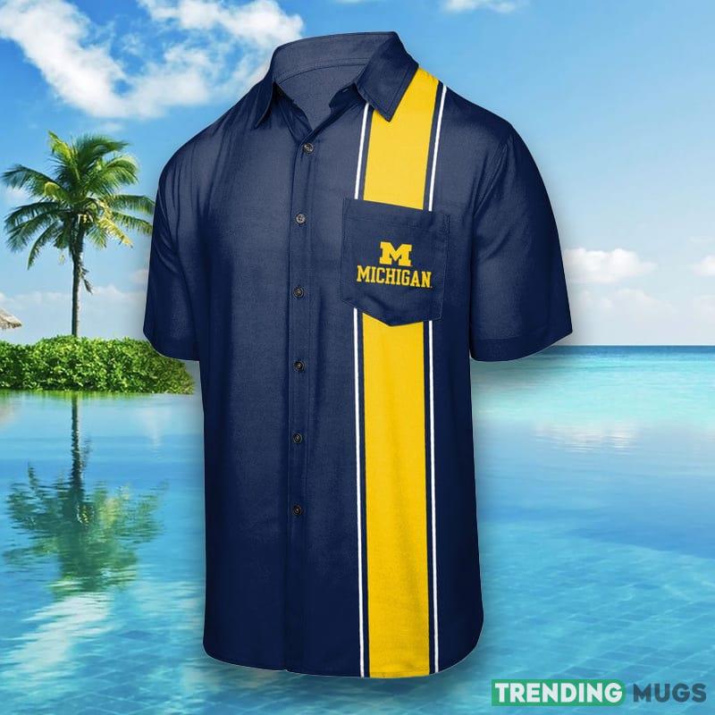 Michigan Wolverines NCAA Mens Bowling Stripe Hawaiian Shirt – Michigan Wolverines NCAA Mens Bowling Stripe Button Up Shirt_1