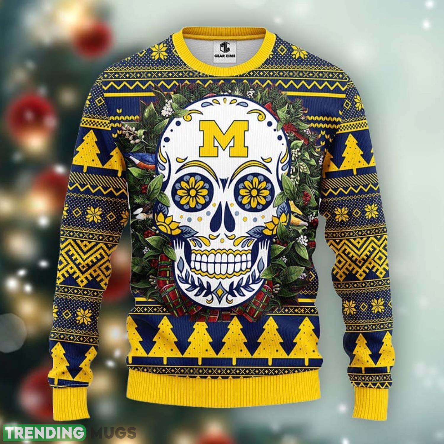 Made with high-quality materials, this sweater ensures both comfort and durability throughout the holiday festivities. The eye-catching design features the iconic Michigan Wolverines logo adorned with a unique skull flower pattern, giving it a trendy and edgy twist. Whether you’re attending a holiday party, cheering on your team from the stands, or simply enjoying the cozy winter nights, this sweater will instantly elevate your style.