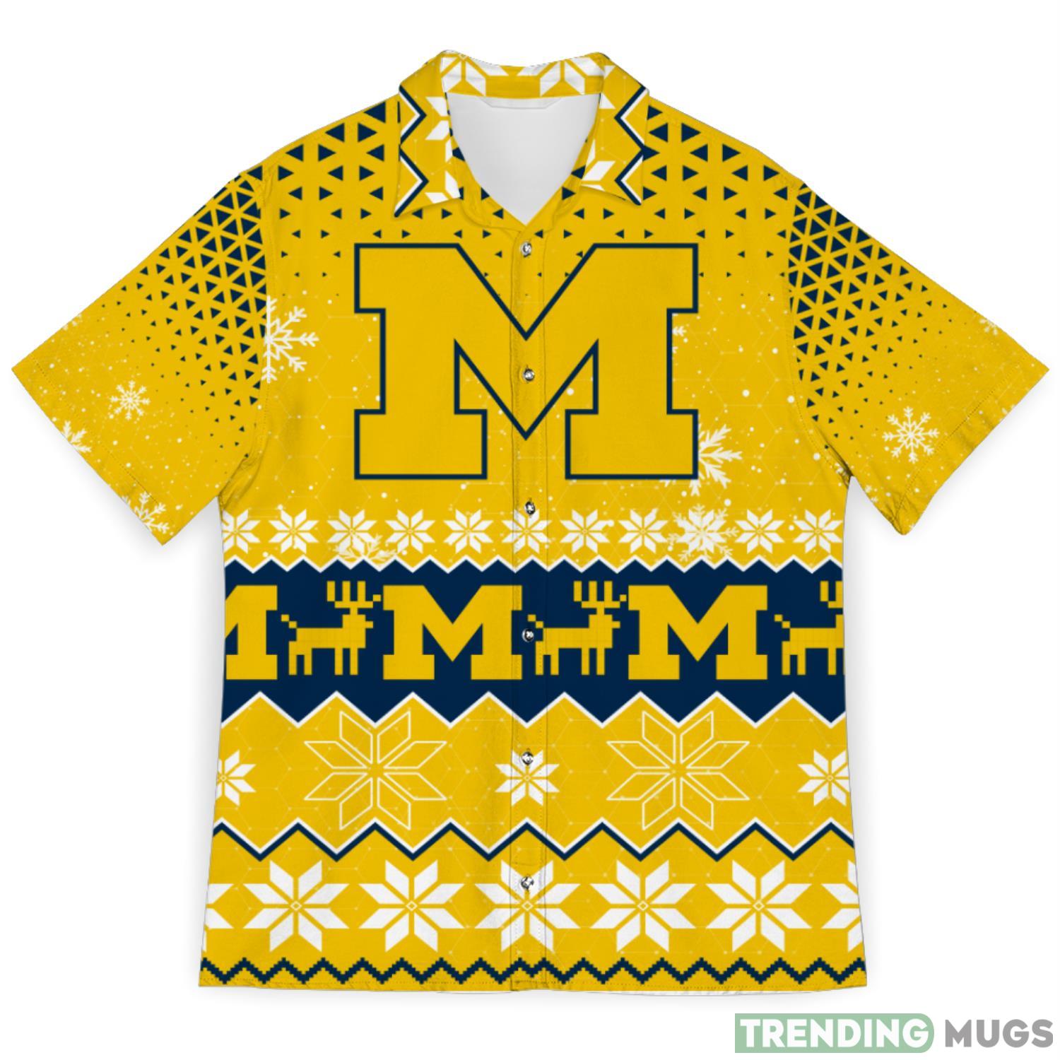 Michigan Wolverines Sports Football Snowflake Pattern 3D Hawaiian Shirt Christmas Gift Product Photo 1