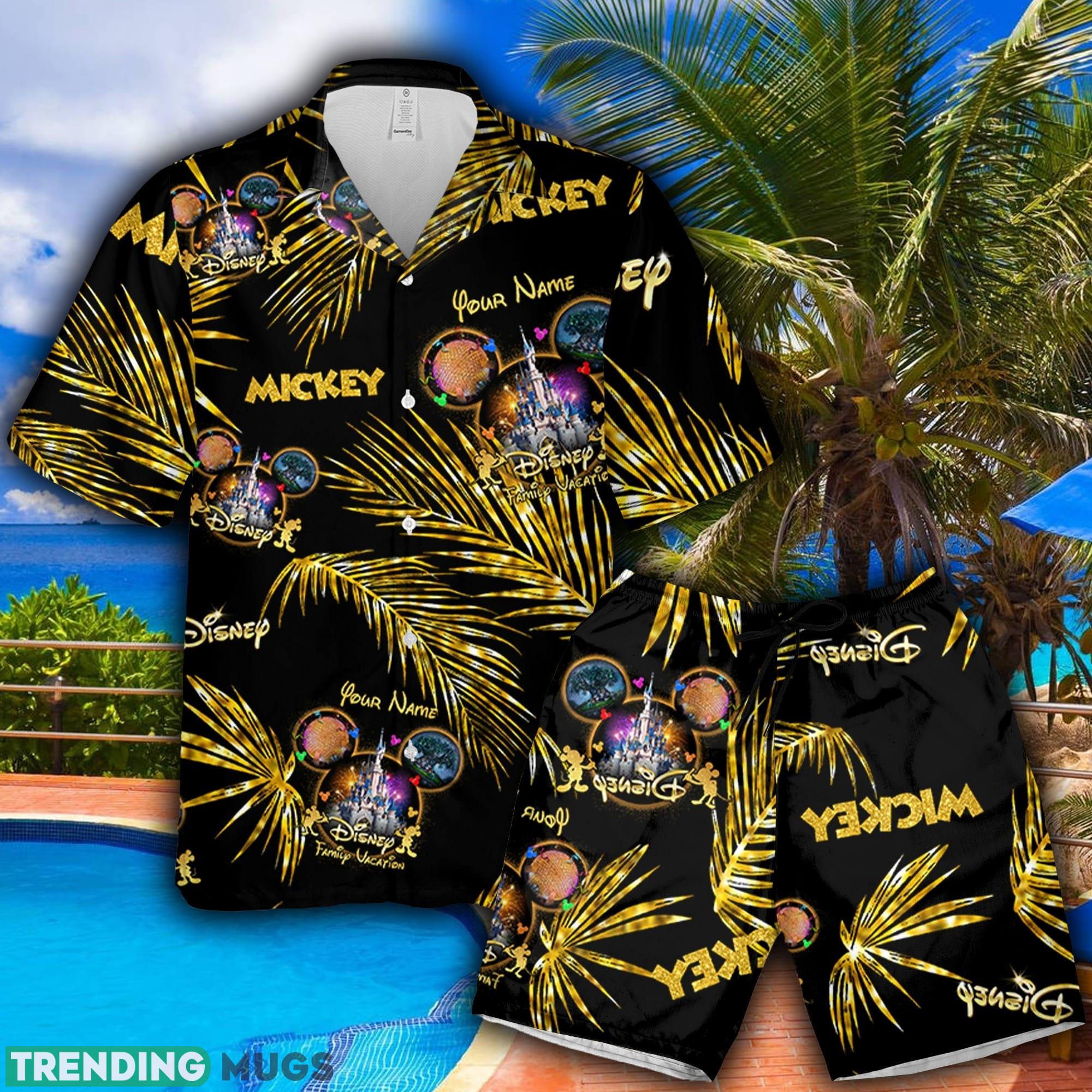 Mickey Gold Texture Hawaiian Shirt And Short Palm Leaves Custom Name Summer Gift For Men And Women Details:
