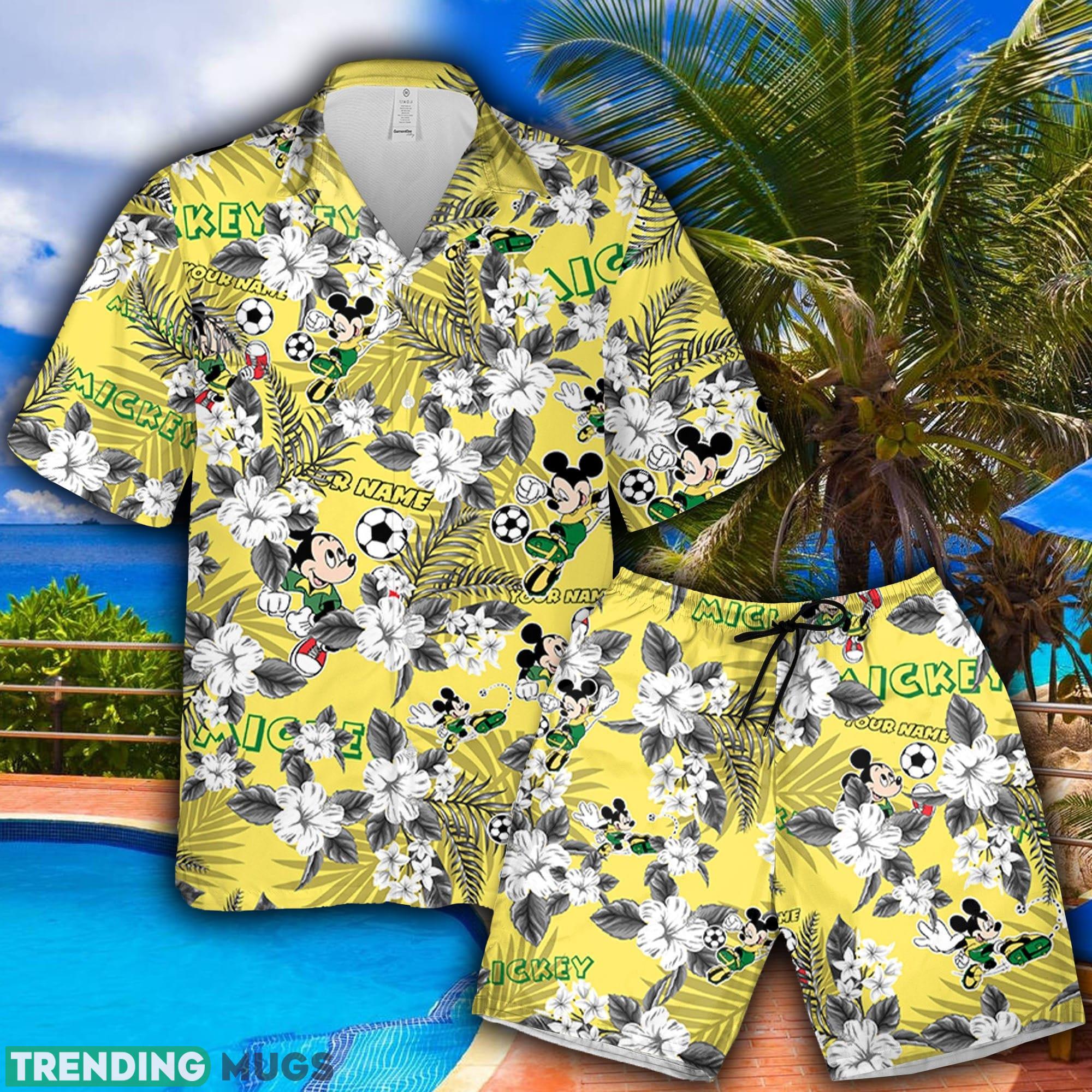 Get ready to score some serious style points with our Mickey Soccer Hawaiian Shirt and Shorts Flowers Custom Name! This summer, step up your fashion game with this vibrant and trendy ensemble, designed for both men and women who love to showcase their unique personality.