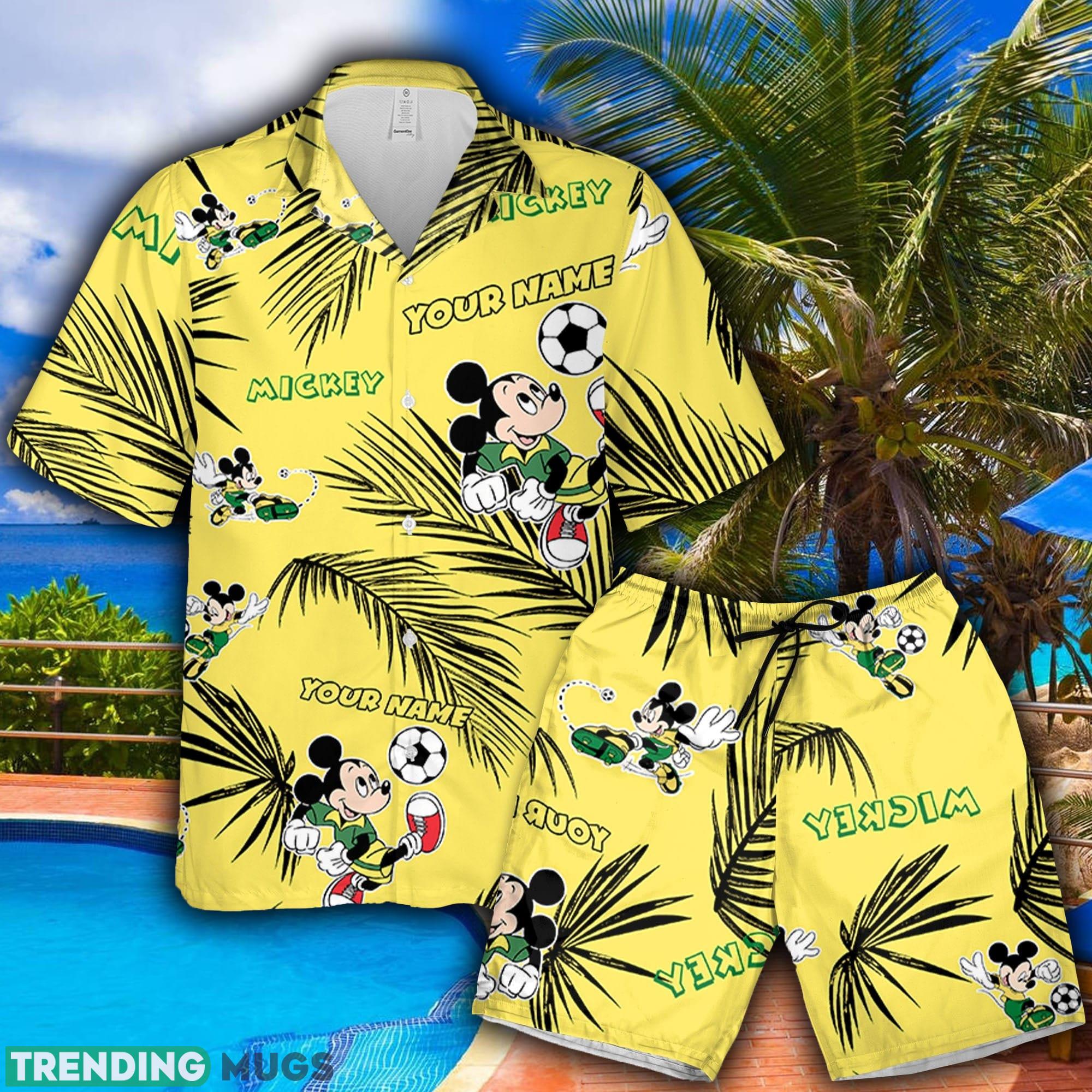 Mickey Soccer Hawaiian Shirt And Short Palm Leaves Custom Name Summer Gift For Men And Women Details: