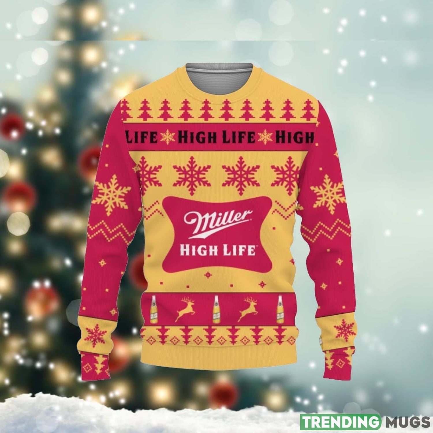 Designed with a playful mix of Miller High Life beers and big snowflake patterns, this sweater is perfect for those who love to celebrate the season with a touch of humor. The 3D effect adds an extra level of excitement, making it a standout piece at any holiday gathering.