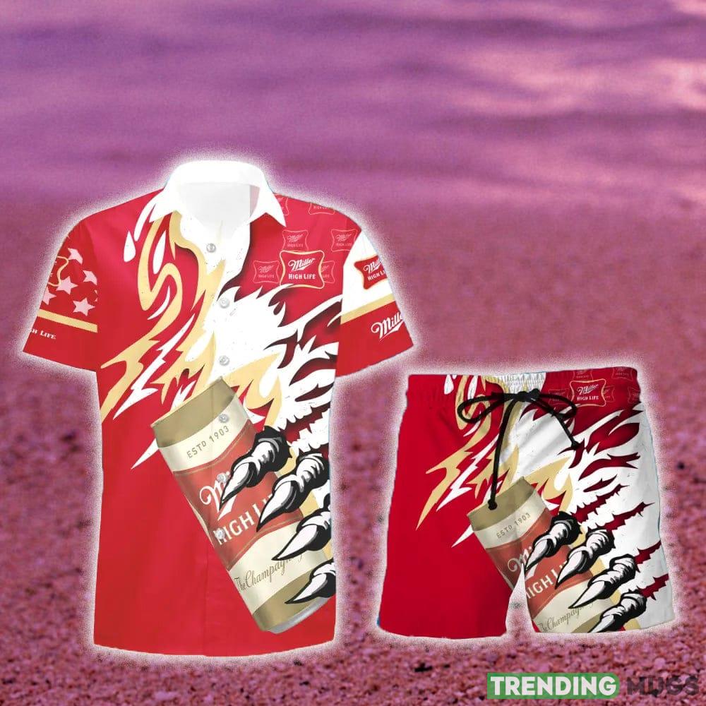 Miller High Life Monster Claw Gift Hawaiian Set Shirt And Short Summer Beach