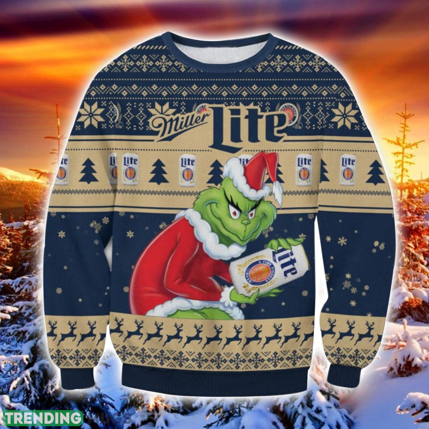 Miller Light Grinch Ugly Christmas Sweater Trending Sweater For 2023 Christmas Holidays 3D Sweater