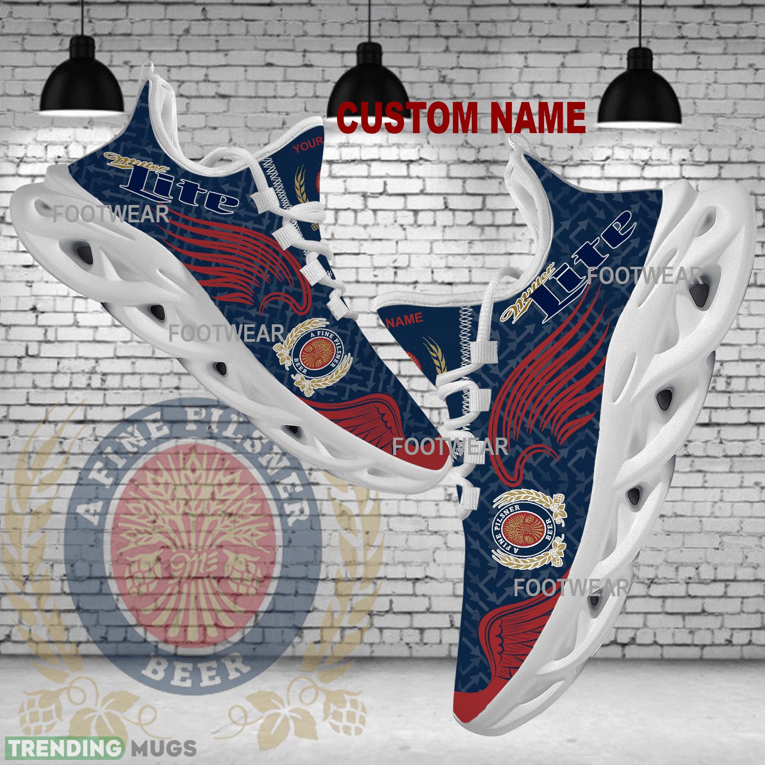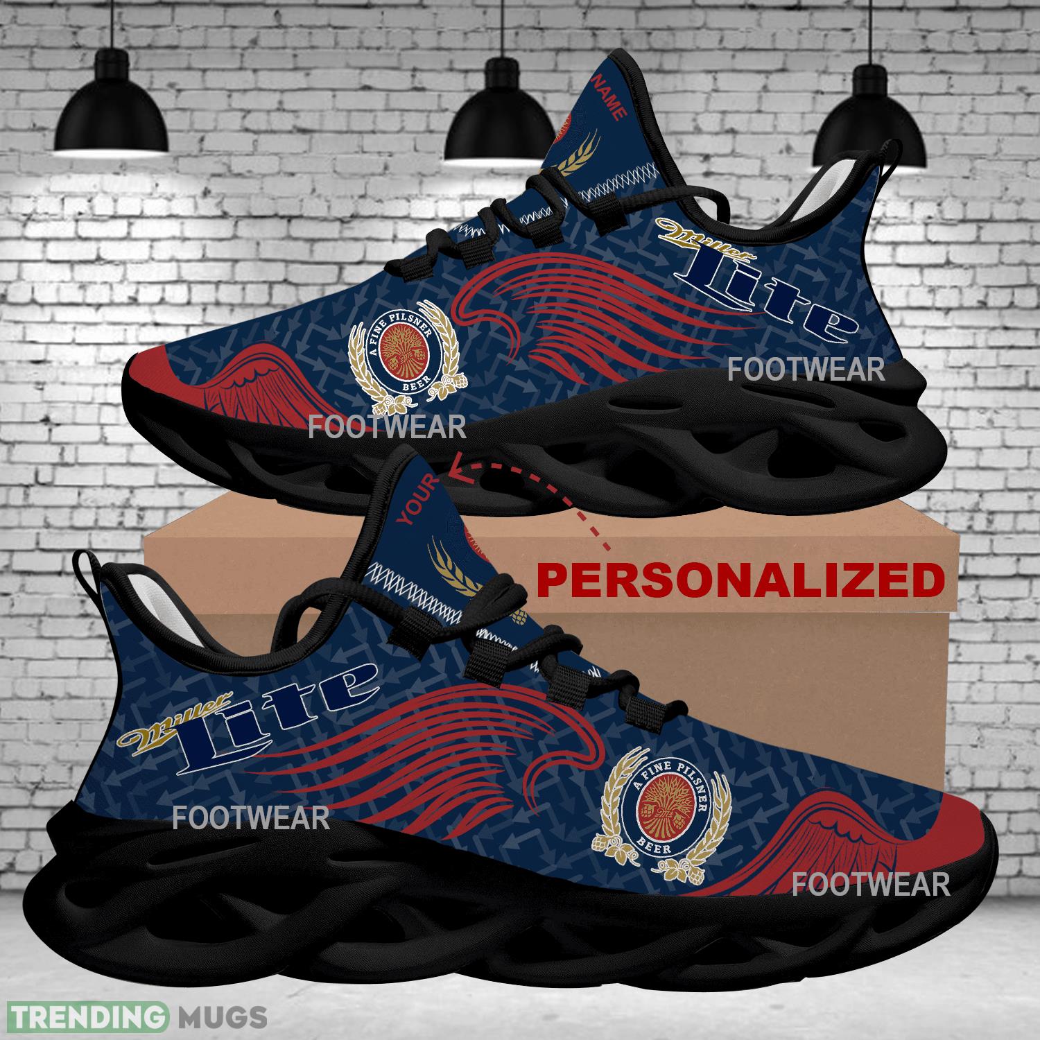 Step out in style with the Miller Lite Brand Logo Wings Pattern Max Soul Shoes Personalized Forward Chunky Sneaker. These unique sneakers feature a bold design inspired by the iconic Miller Lite brand logo, making them a must-have for any beer enthusiast or fashion-forward individual. The chunky sole provides maximum comfort and support, while the personalized detailing adds a touch of individuality to your look. Stand out from the crowd and show off your love for Miller Lite with these one-of-a-kind sneakers.