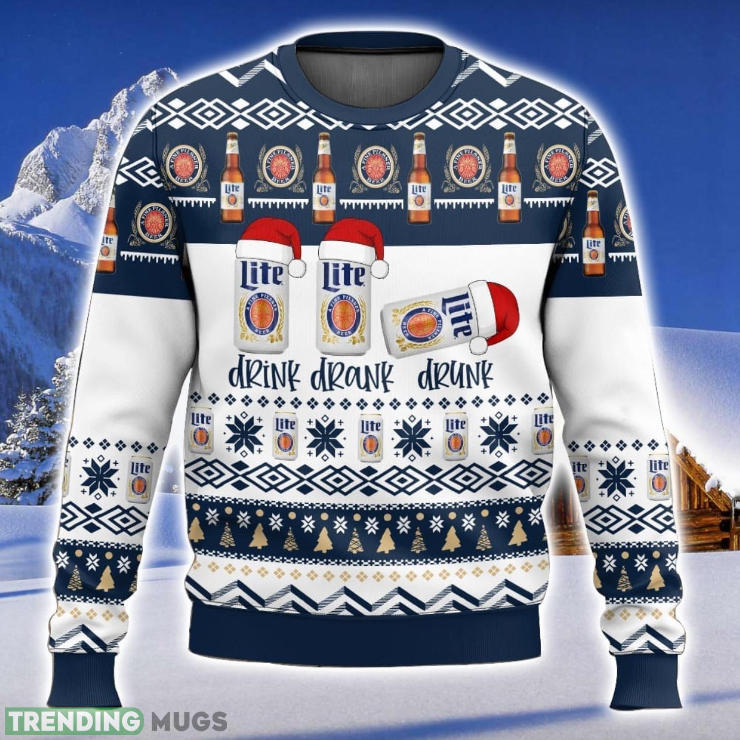 Miller Lite Drink Drank Drunk 3D Christmas Sweater Ugly Christmas Sweater Christmas Gift Ideas Product Photo 1