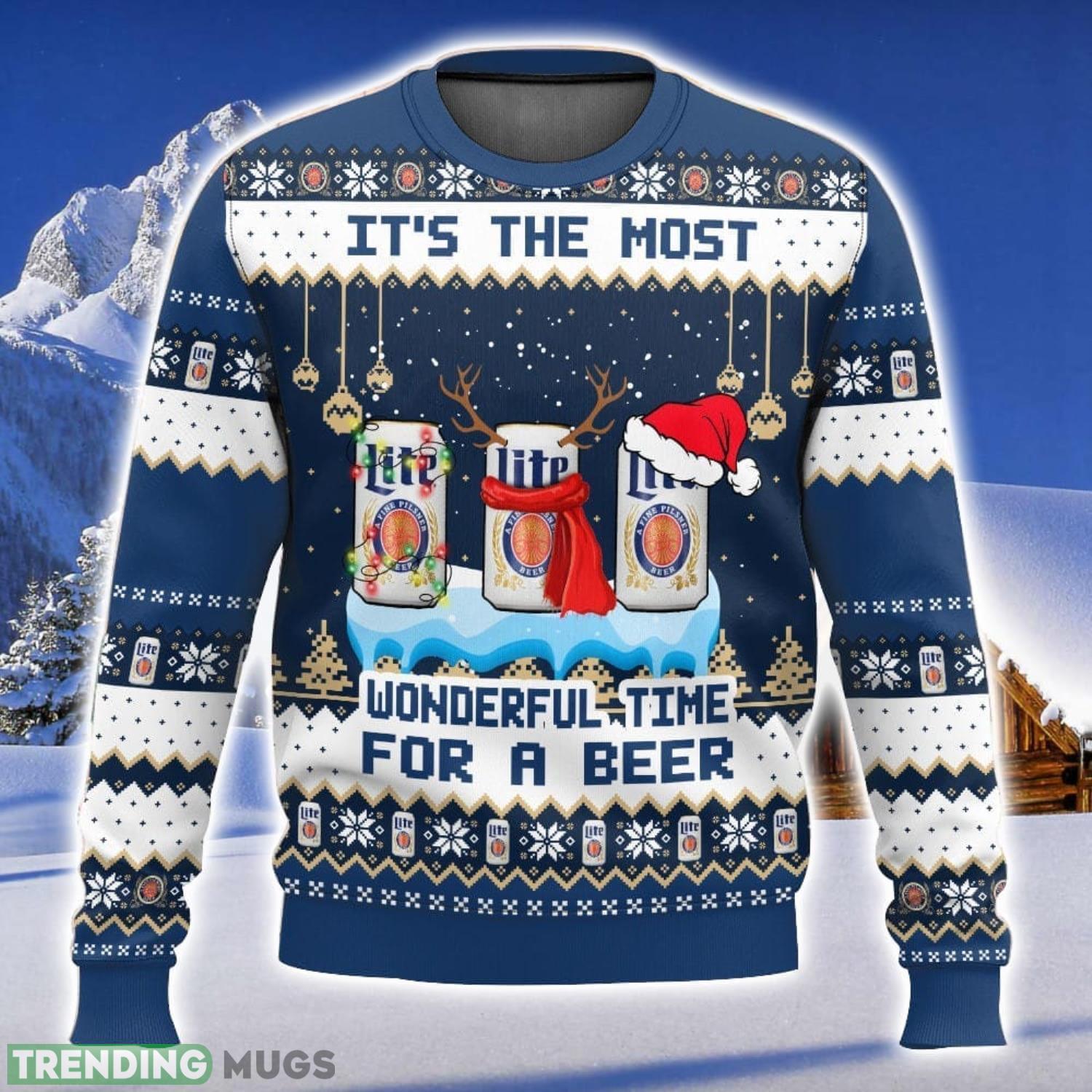 Miller Lite It’s The Most Wonderful Time For A Beer 3D Christmas Sweater Ugly Christmas Sweater Christmas Gift Ideas Product Photo 1