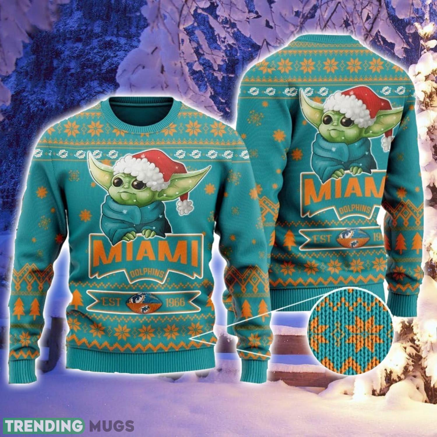 MImi Dolphins Cute Baby Yoda Grogu Holiday Party All Over Print Christmas Gift Ugly Christmas Sweater Informations:
