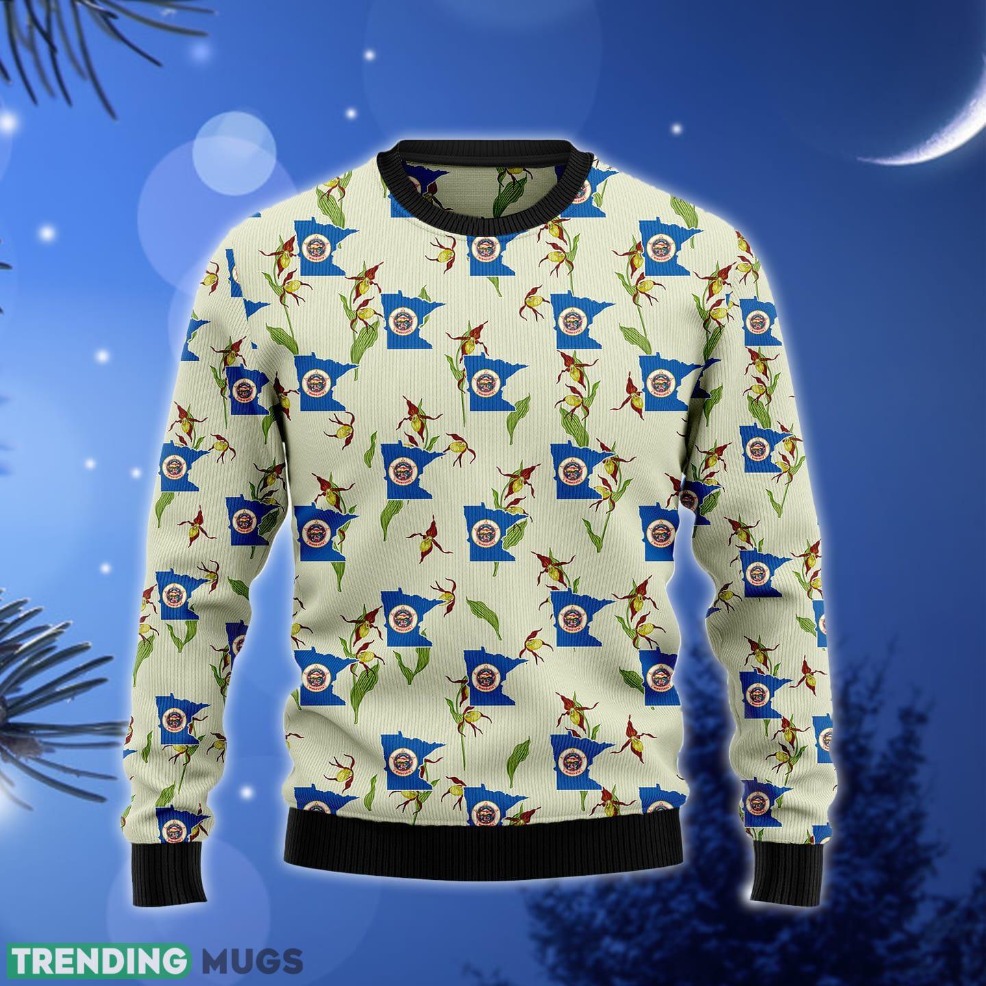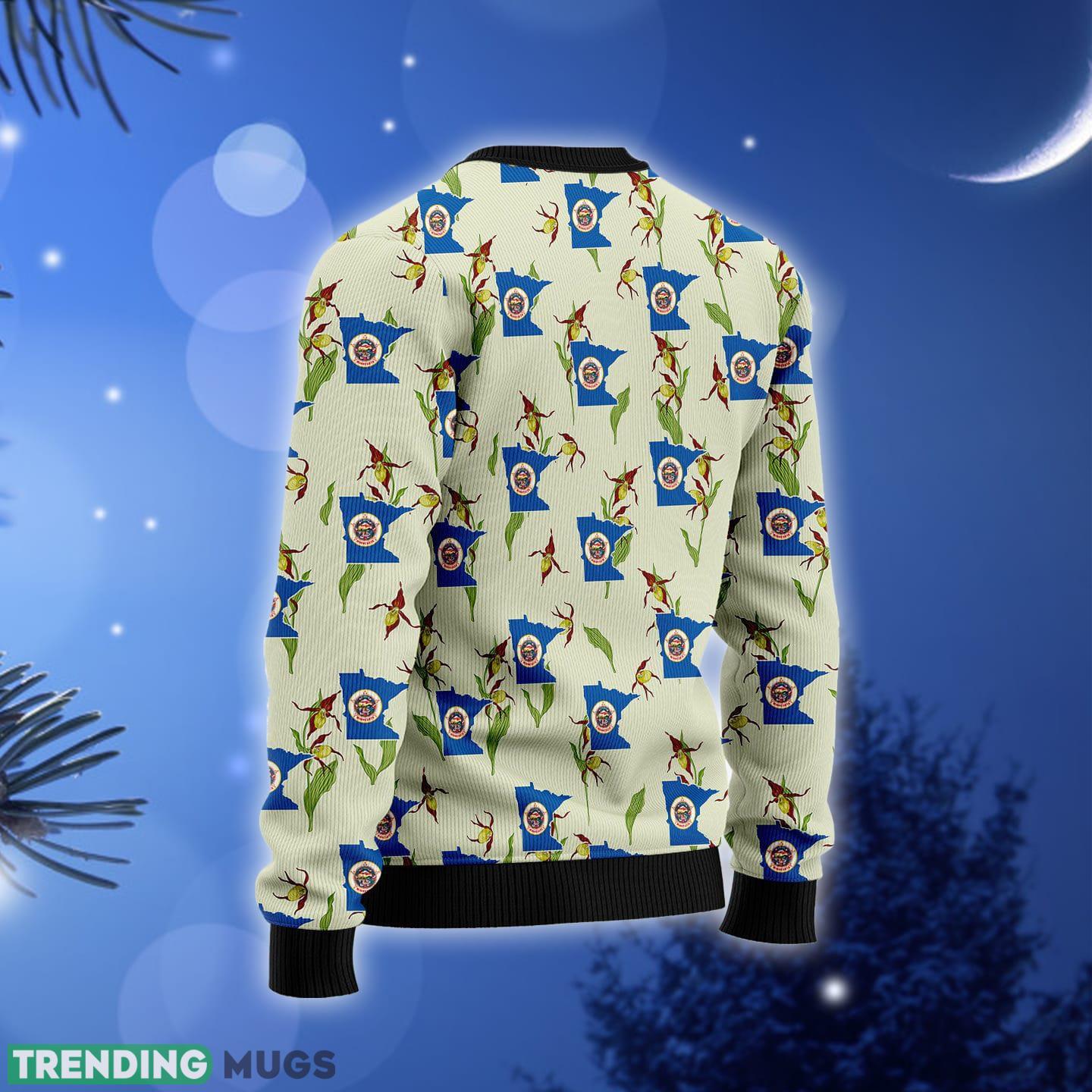 Featuring the iconic Lady Slipper flower, a symbol of our beautiful state, this sweater showcases your love for Minnesota with a touch of holiday spirit. Its vibrant colors and intricate design make it a standout piece at any Christmas gathering or ugly sweater party.