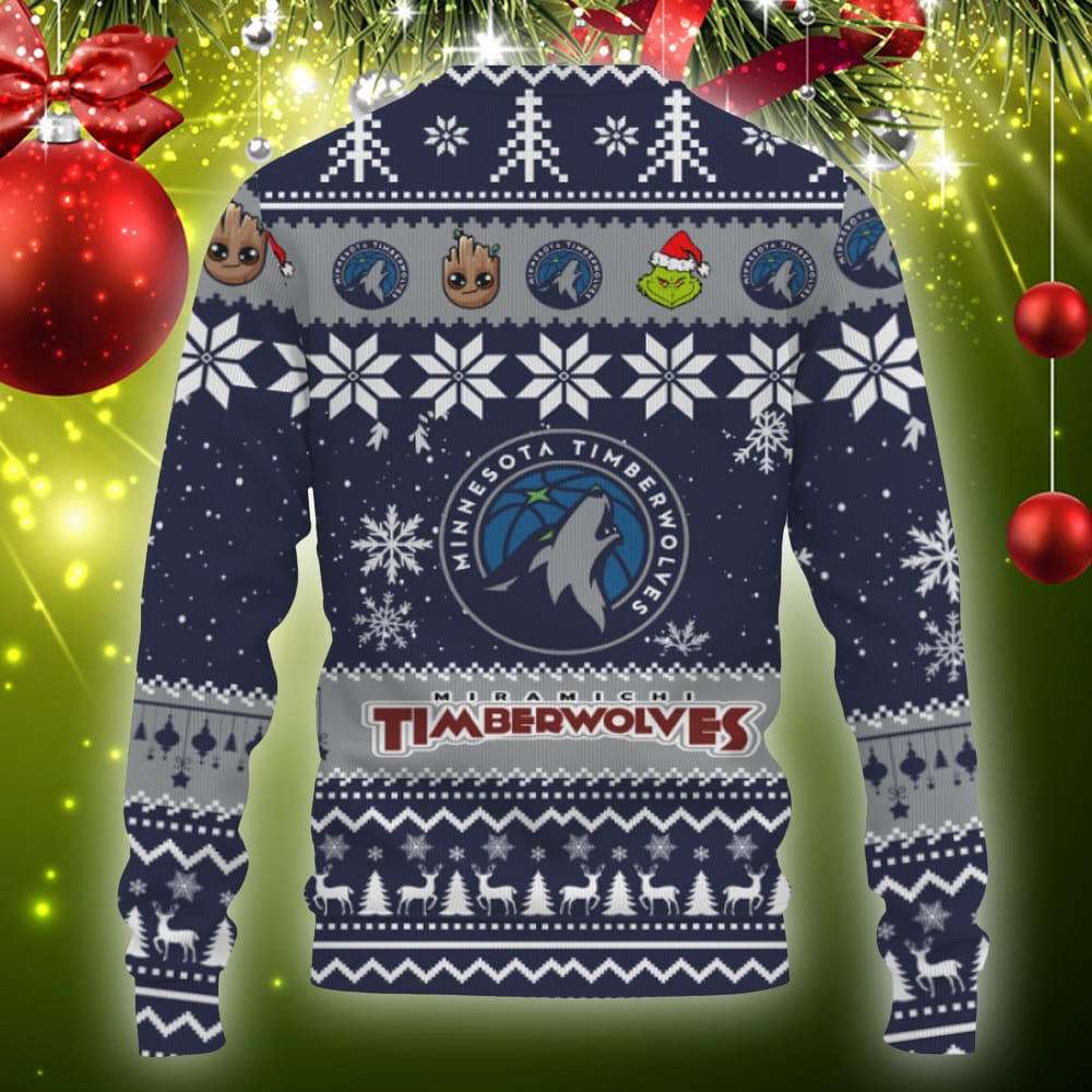 Minnesota Timberwolves Baby Groot And Grinch Best Friends Football American Knitted Christmas Sweater Informations: