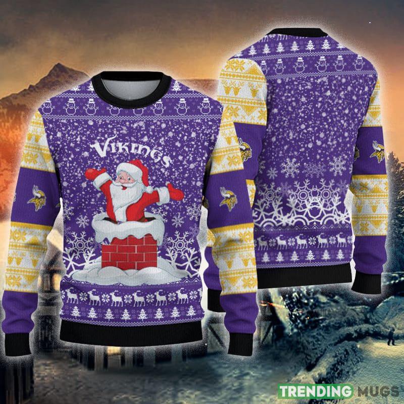 Minnesota Vikings Christmas Santa Claus Pattern Knitted Ugly Christmas Sweater AOP Gift For Men And Women Informations:
