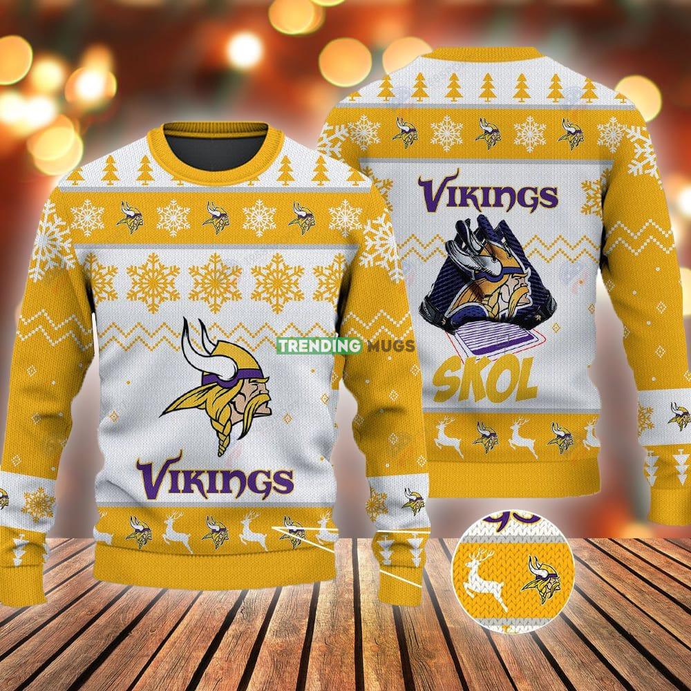 Minnesota Vikings Football Gloves Pattern Knitted Xmas Yellow Sweater AOP Gift Christmas Informations: