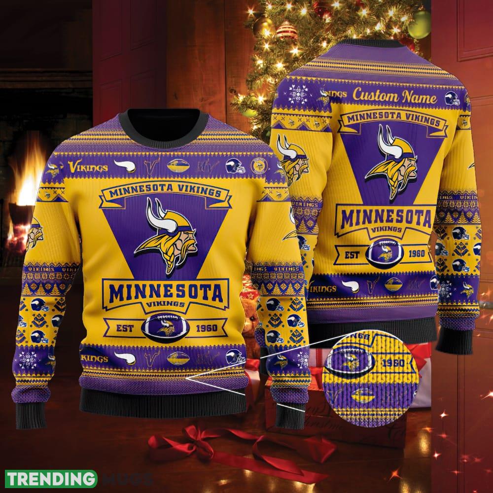 Minnesota Vikings Football Team Logo Knitted Christmas Sweater Outwear Custom Name Informations: