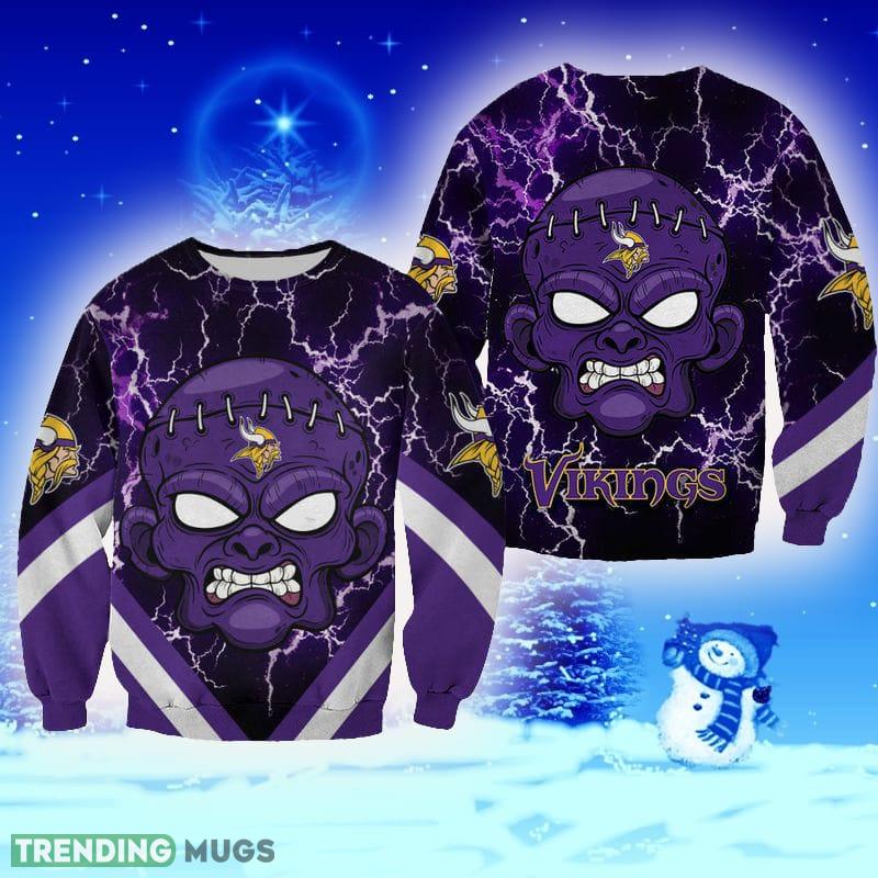Designed to fit both men and women, our versatile unisex sweater ensures that Vikings fans of all genders can proudly represent their team. The eye-catching Frankenstein Edition pattern adds a playful twist to the classic Vikings colors, making this sweater a must-have for any die-hard fan.
