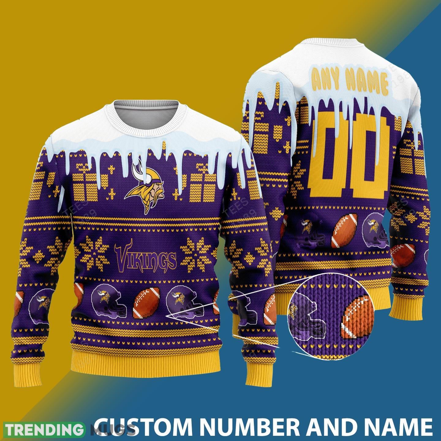 Stay cozy and show off your love for the Minnesota Vikings with our exclusive NFL Snowflakes Reindeer 3D Sweater Custom Number And Name! This one-of-a-kind sweater is perfect for any die-hard Vikings fan looking to make a bold fashion statement during the holiday season.