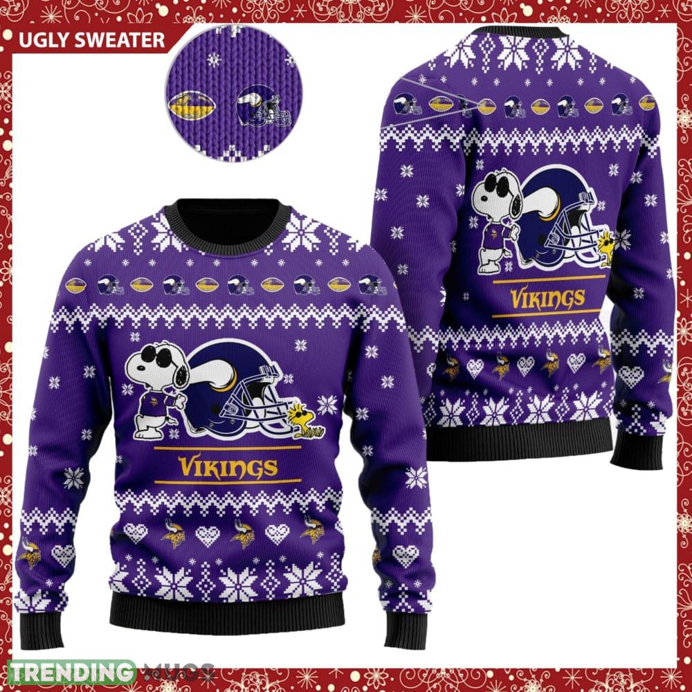Designed with the true Vikings fan in mind, this sweater features a delightful mix of the team’s colors and the lovable Snoopy in his football helmet. The intricate detailing truly brings this sweater to life, with vibrant graphics that will make you the envy of every fellow fan.
