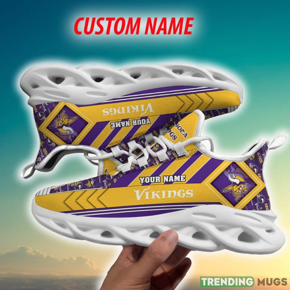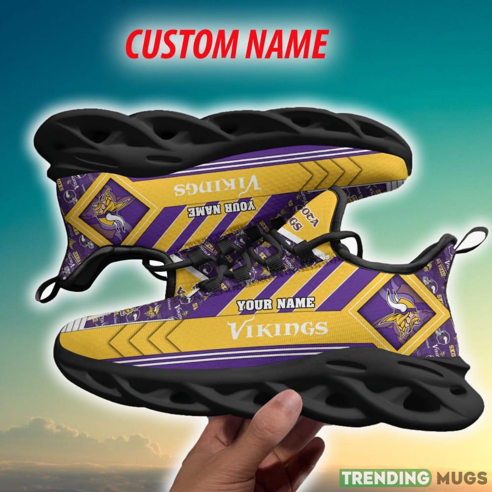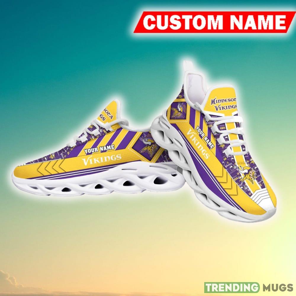 This Minnesota Vikings NFL Imagery Personalized Chunky Shoes Fans Gift Max Soul Sneakers New For Men And Women is a breathable, lightweight, and comfortable casual outdoor shoe that has a unique design. It is made of a mesh fabric which makes it sweat absorbent and breathable, while the rubber bottom ensures traction, comfort, and durability. It is available in two colors: black or white sole. There are two styles of shoelace holes so you can choose your preference.