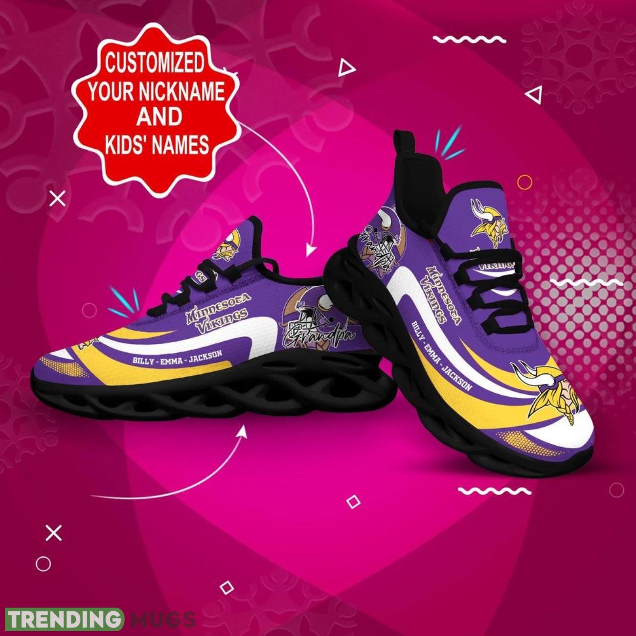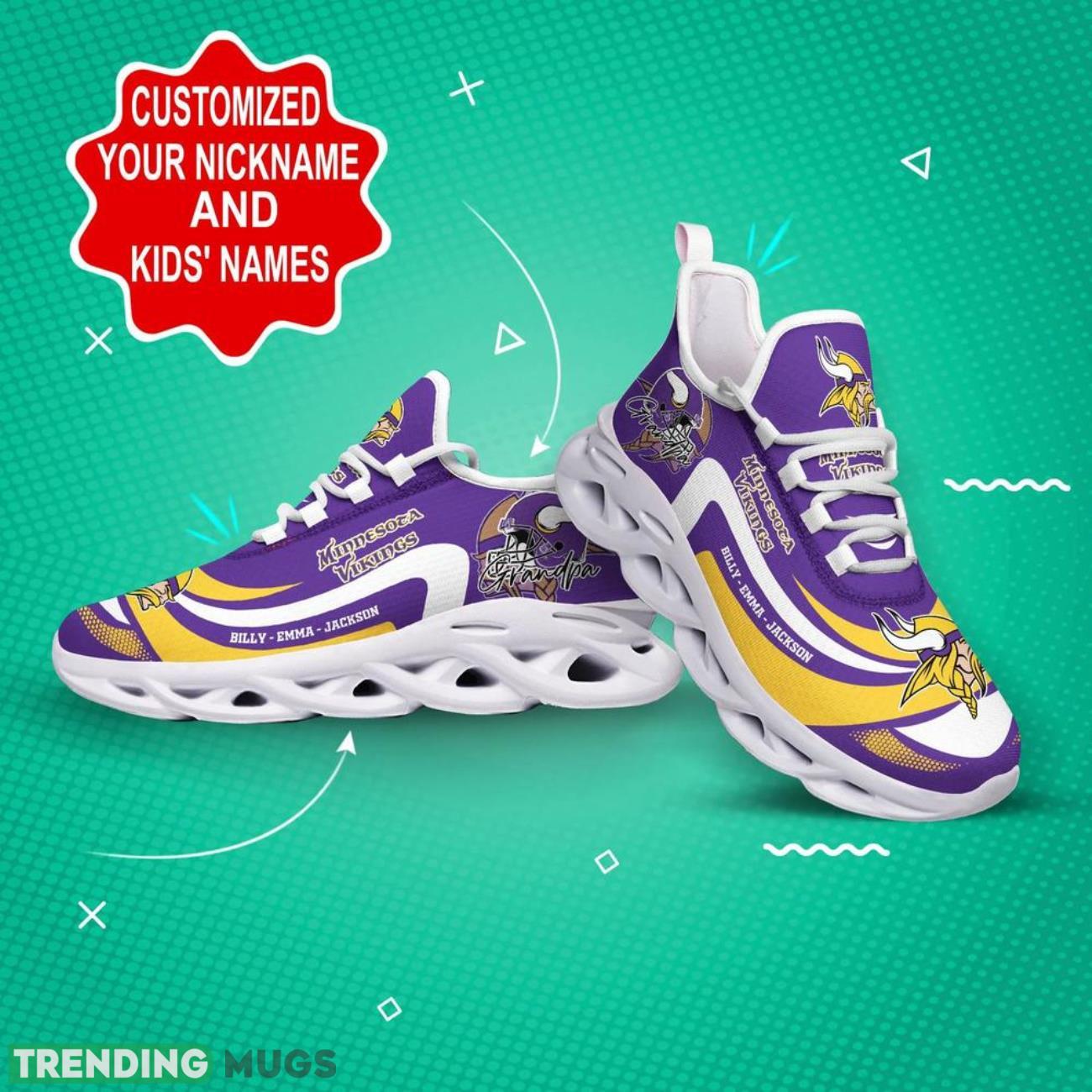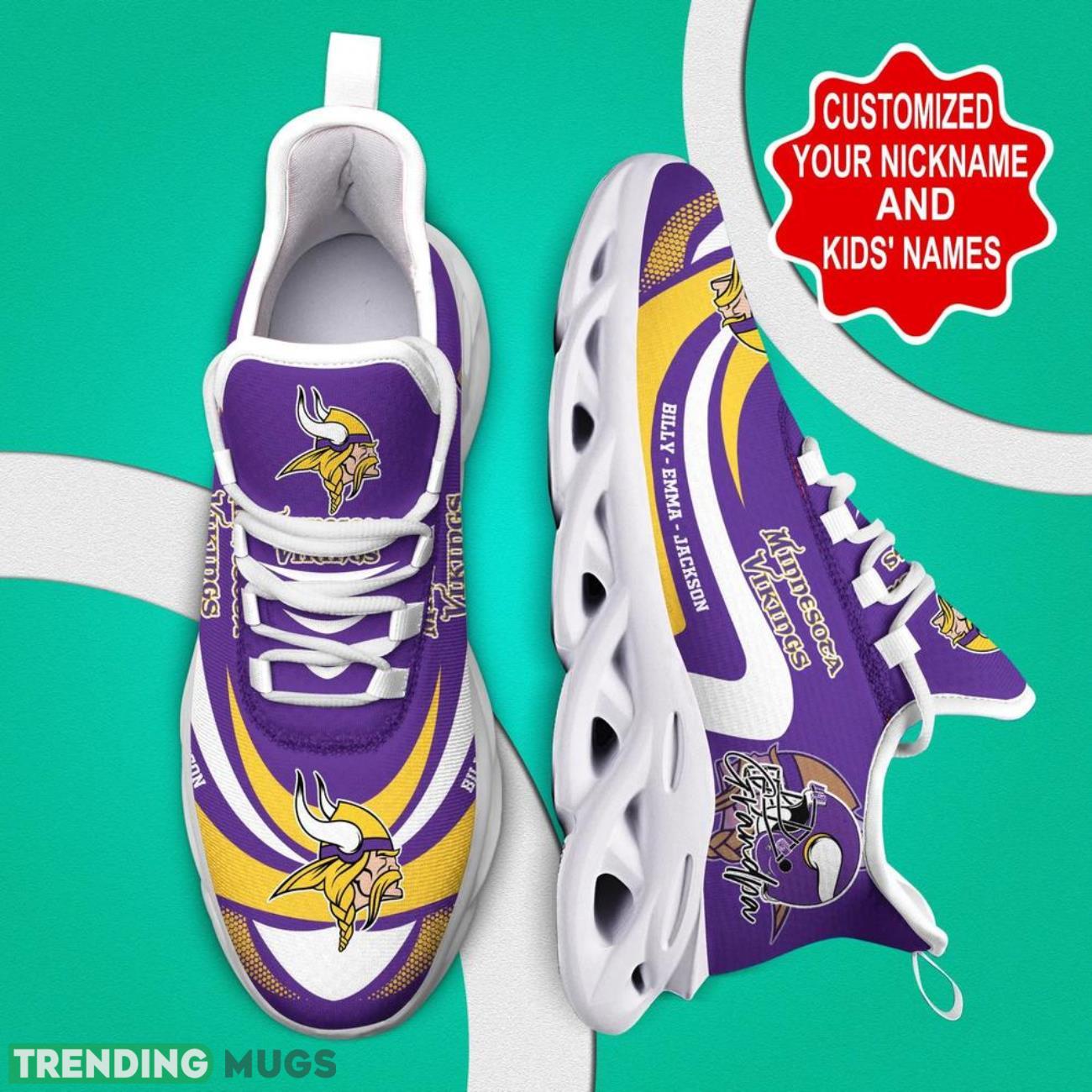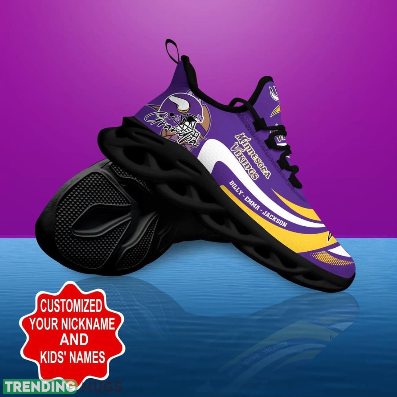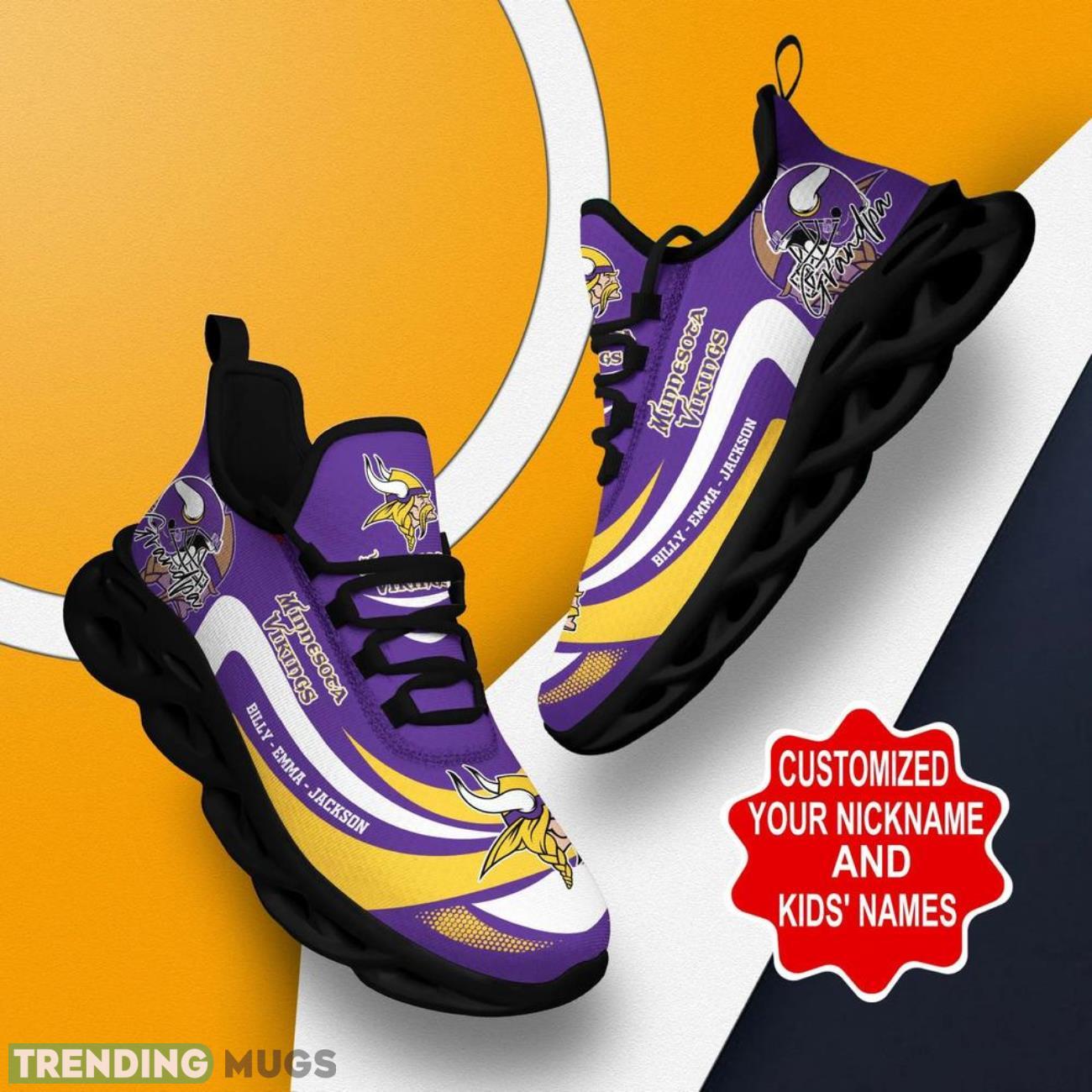 Show off your Minnesota Vikings pride with these custom name personalized Max Soul shoes! Perfect for the big fans of the NFL team, these sport shoes feature the iconic Vikings logo and can be personalized with your name for a unique touch. Whether you’re hitting the gym or cheering on your team at the game, these shoes are sure to make a statement. Don’t miss out on this must-have for any true Vikings fan!