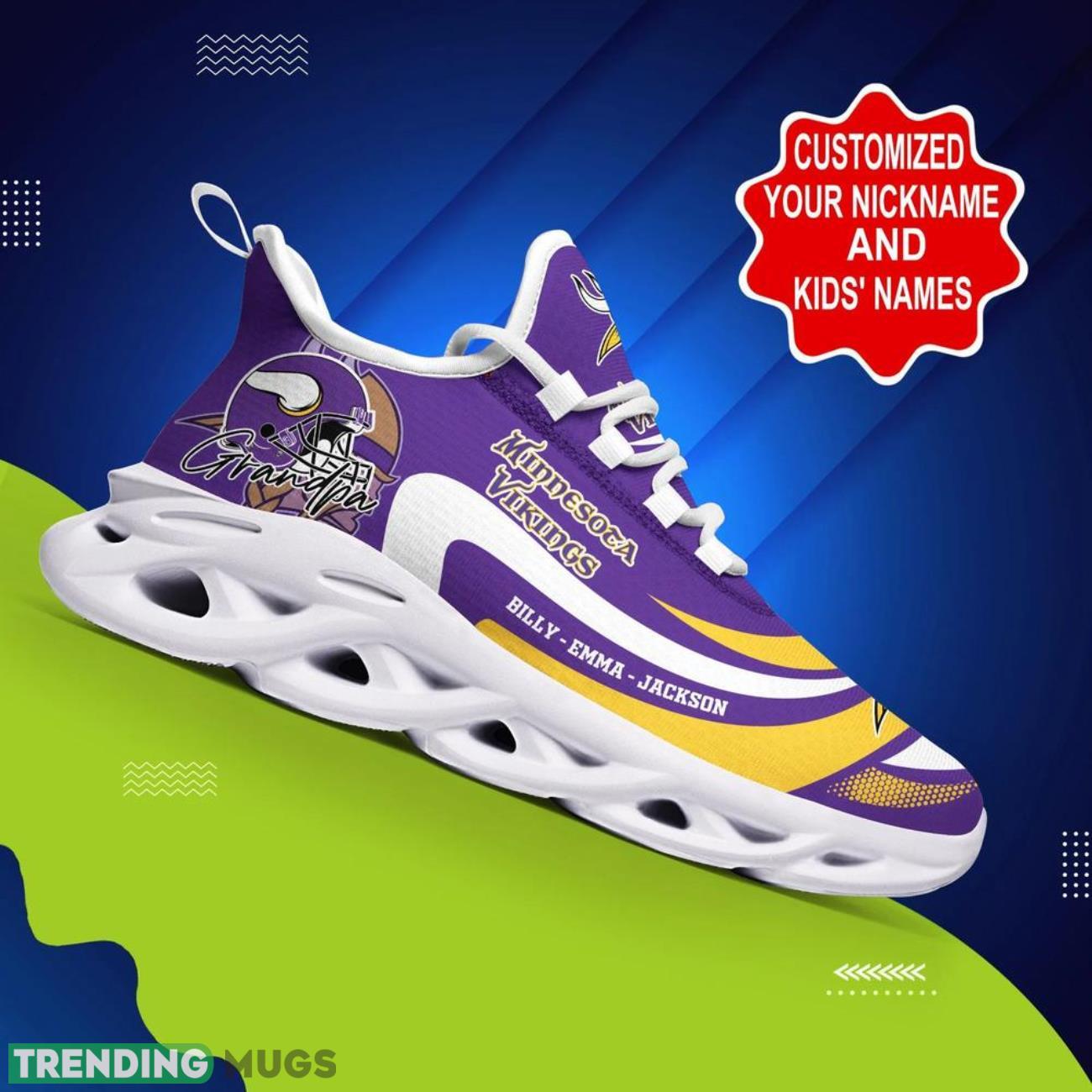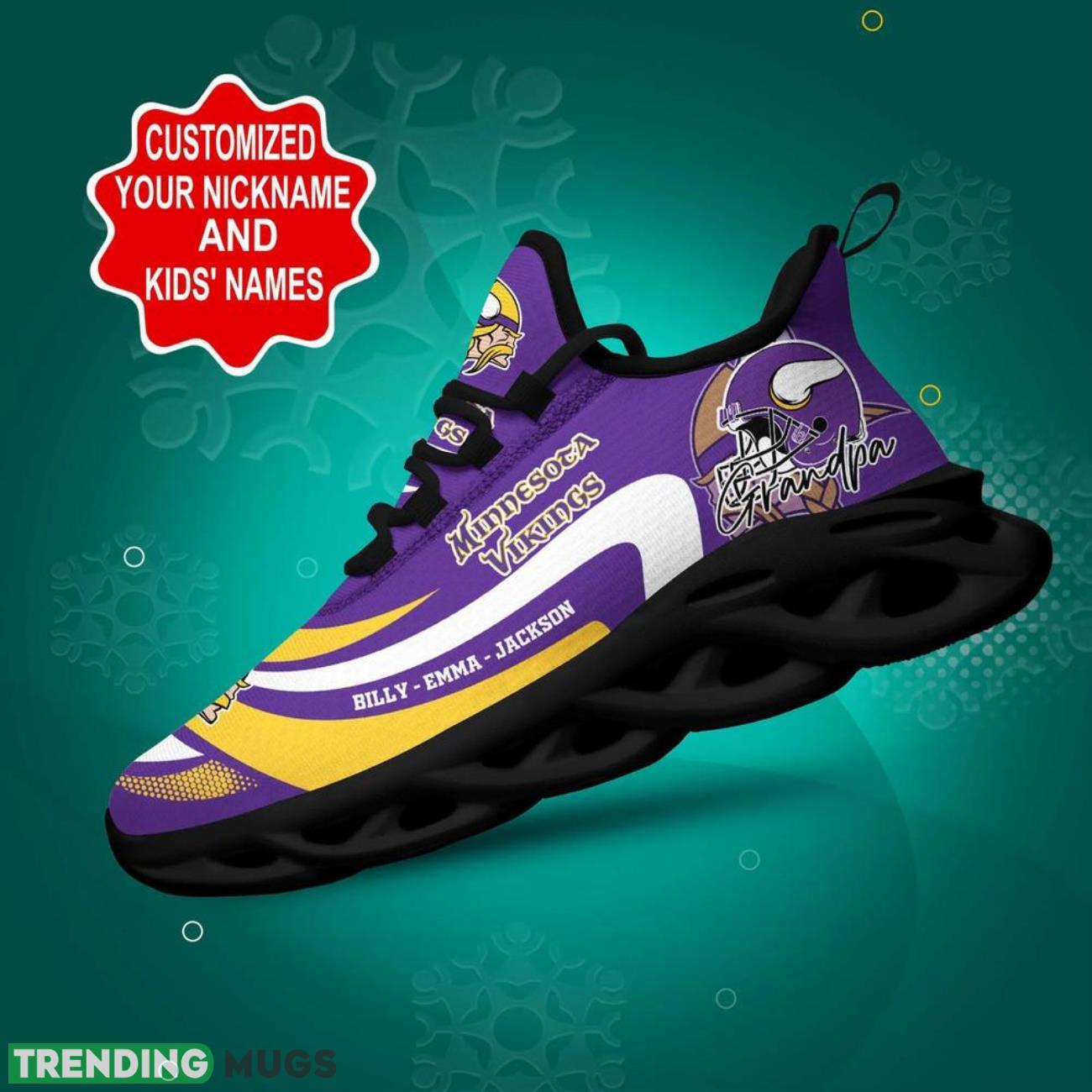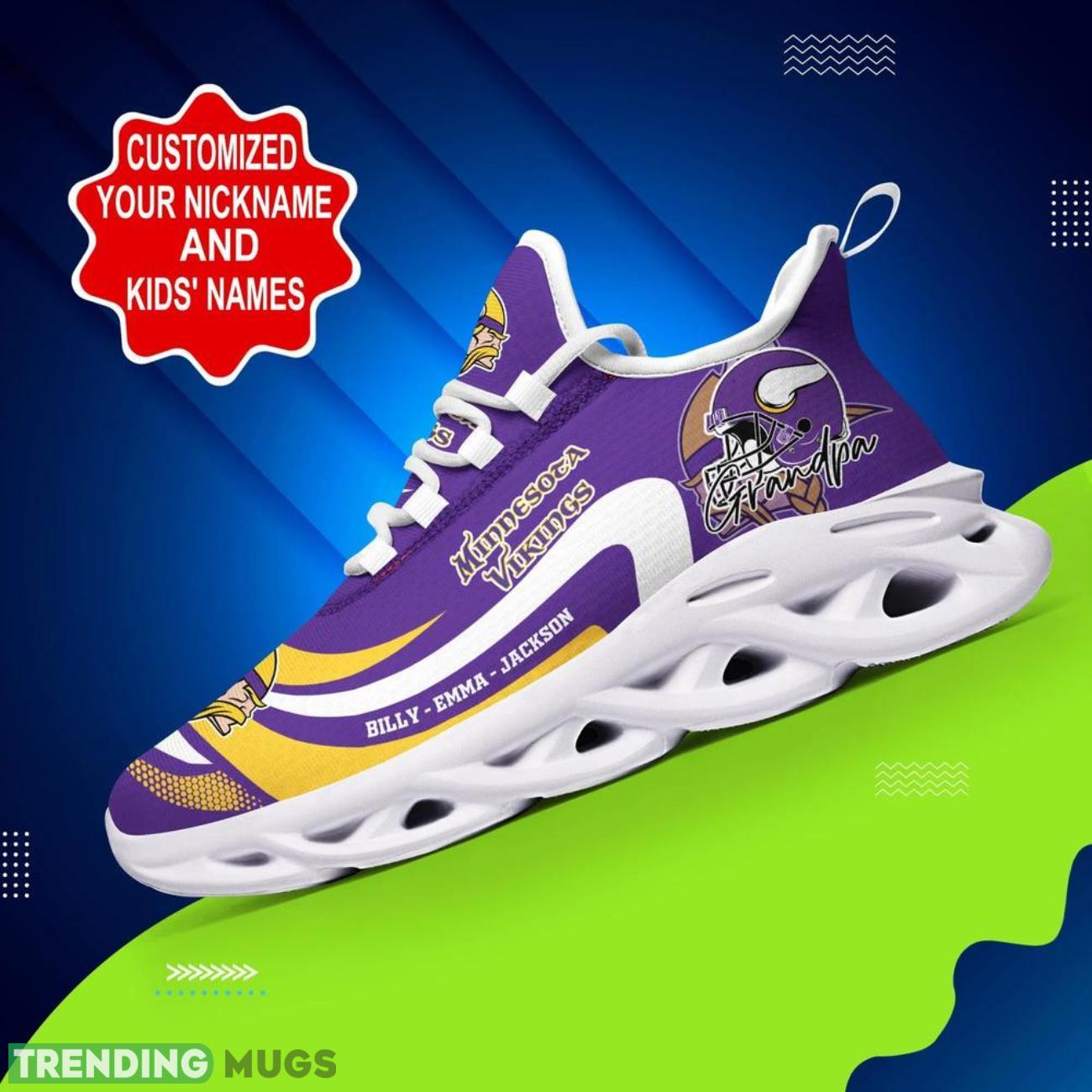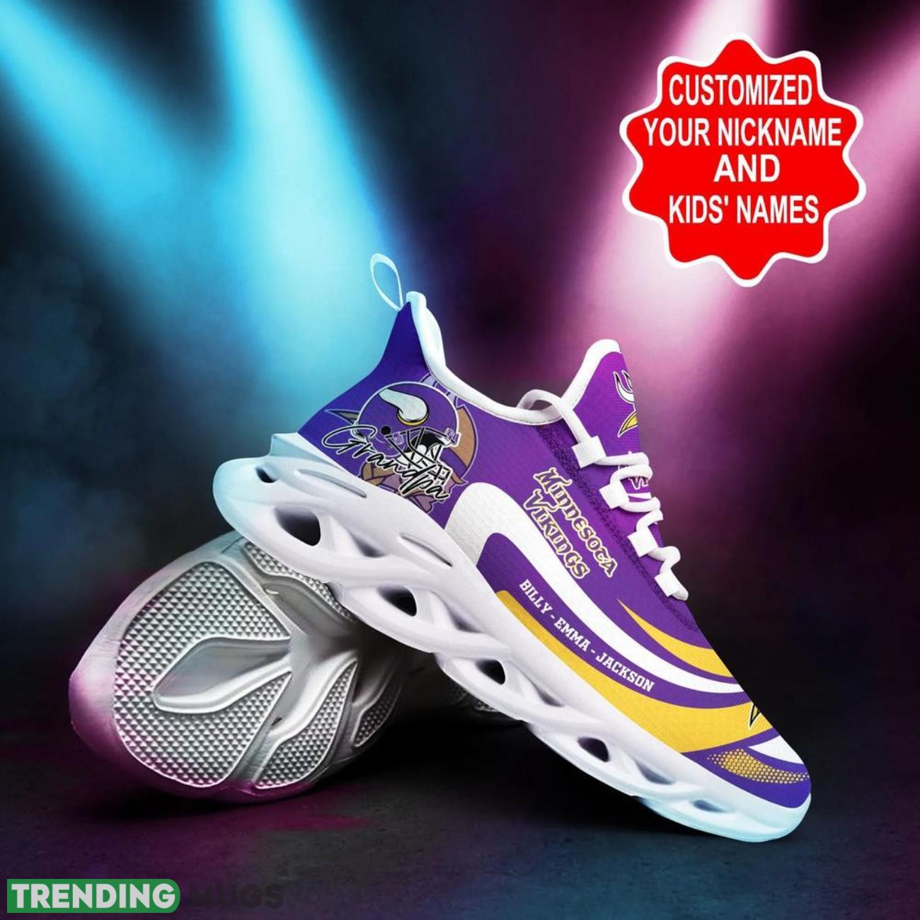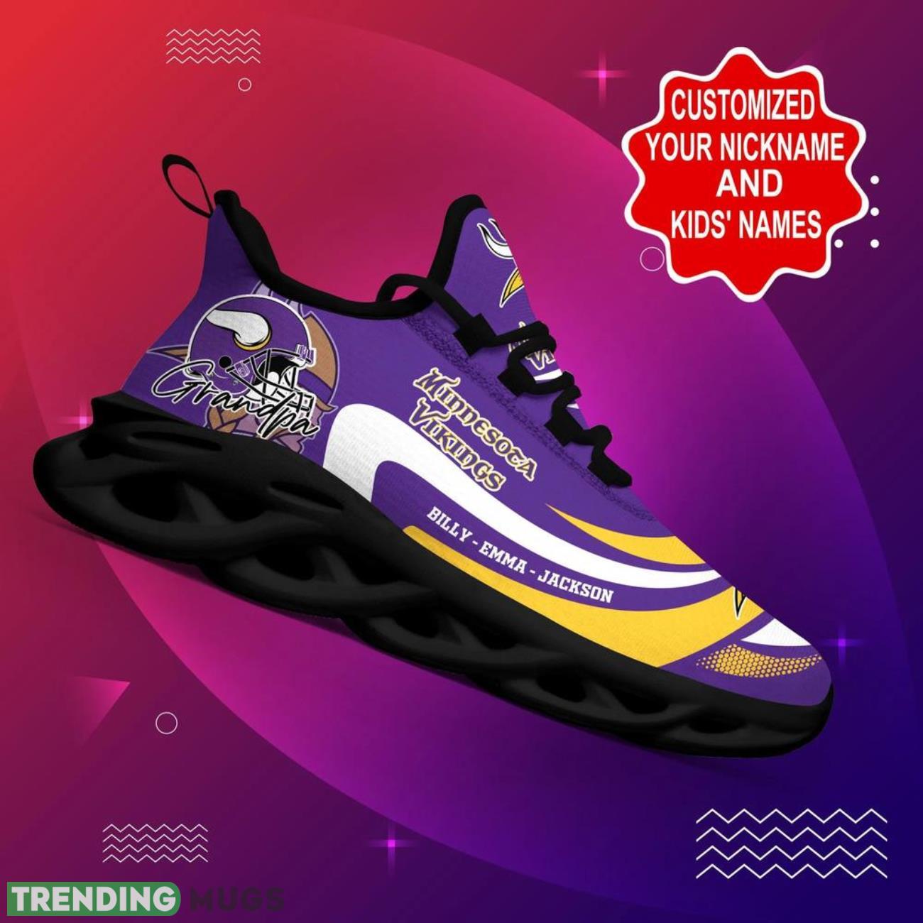Show off your Minnesota Vikings pride with these custom name personalized Max Soul shoes! Perfect for the big fans of the NFL team, these sport shoes feature the iconic Vikings logo and can be personalized with your name for a unique touch. Whether you’re hitting the gym or cheering on your team at the game, these shoes are sure to make a statement. Don’t miss out on this must-have for any true Vikings fan!