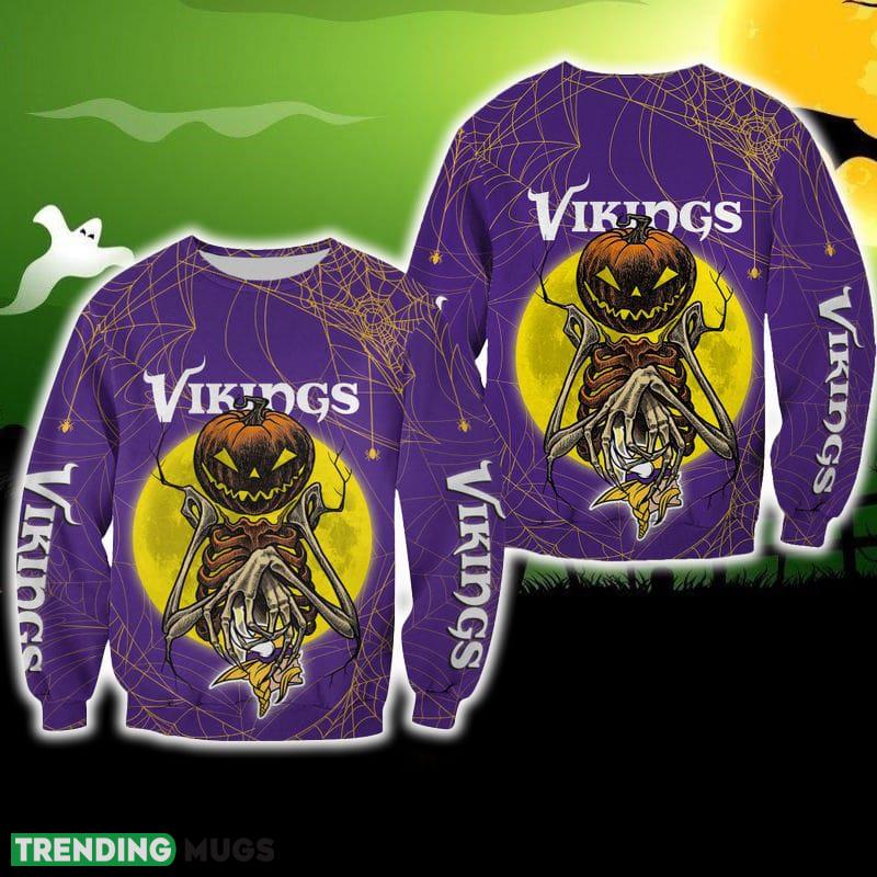 Crafted with attention to detail, this sweater features a unique design that combines the iconic Vikings logo with a festive Halloween twist. The Pumpskin Monster adds a touch of playful fright to your game day attire, making it perfect for Halloween parties or cozying up by the fire during the holiday season.