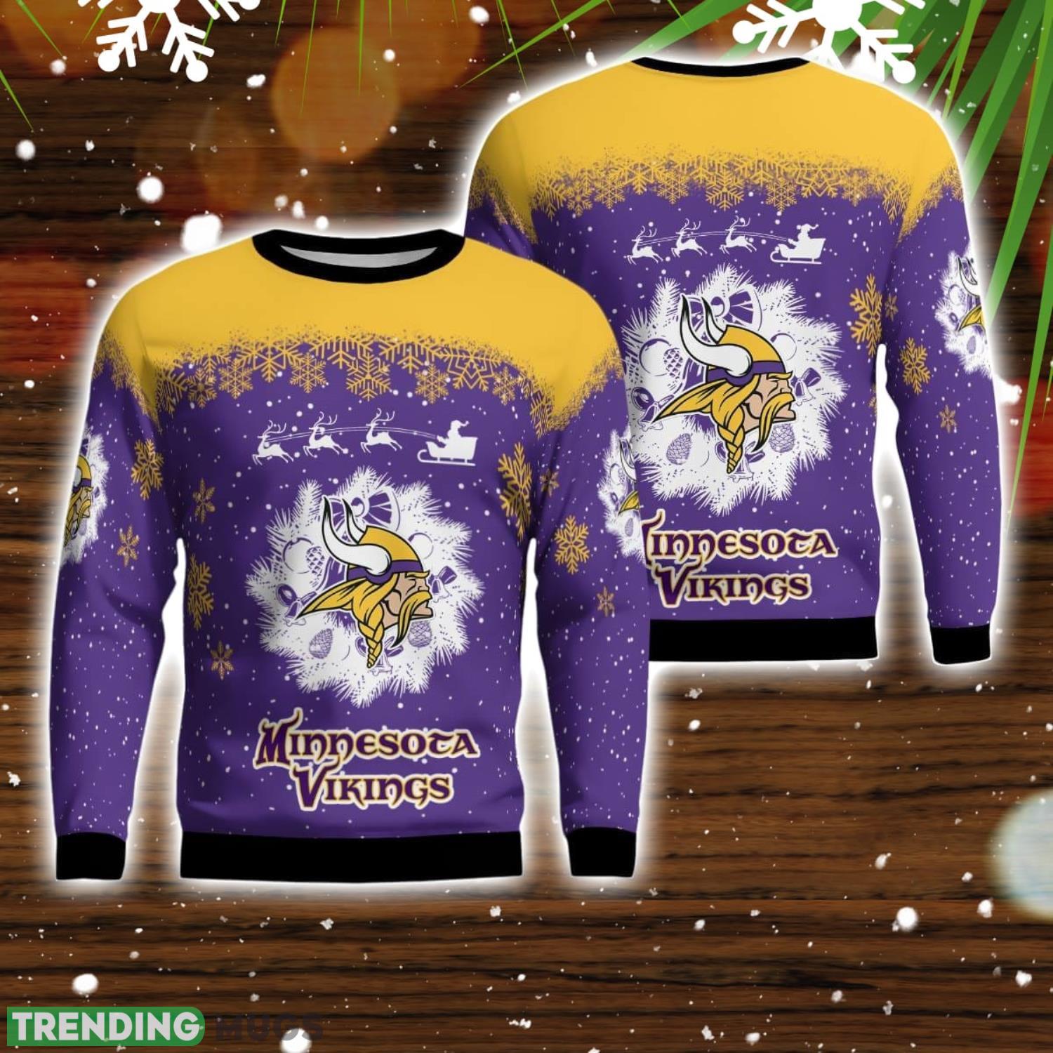 Minnesota Vikings Santa sleigh driving reindeer Pattern Ugly Christmas Sweater Informations: