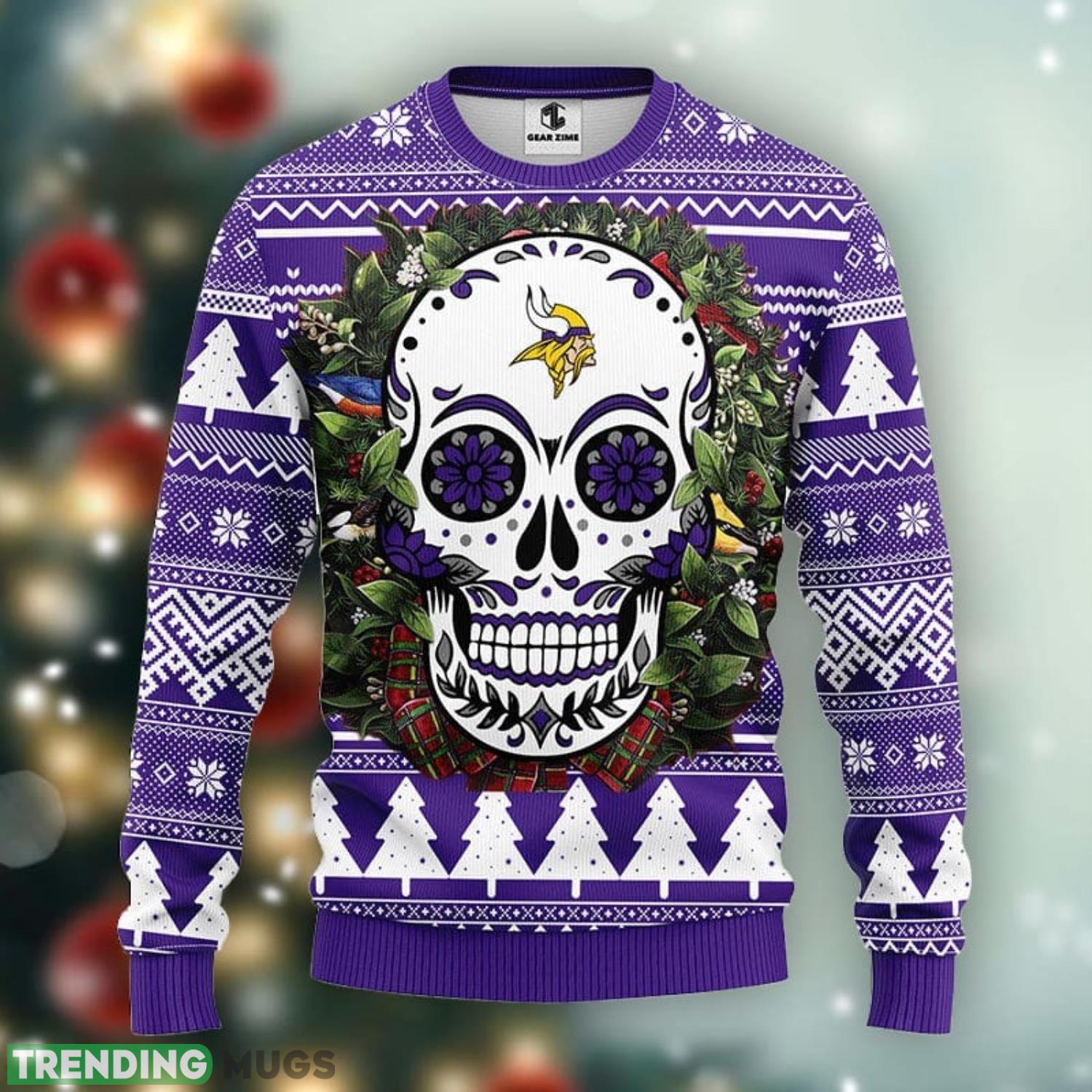 Minnesota Vikings Skull Flower Ugly Christmas Ugly Sweater Sport Christmas Gift Ideas Product Photo 1