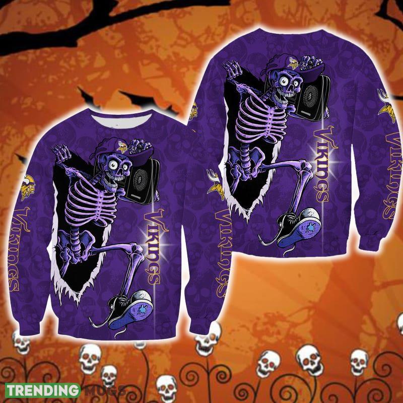 Minnesota Vikings Skull Halloween Trendy Halloween Ugly Sweater For Men And Women Gift Christmas 3D Sweater