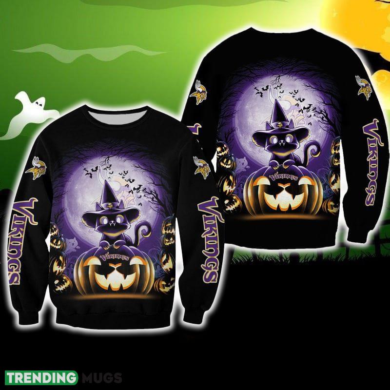Minnesota Vikings Witch Cat Halloween Edition Unisex Bear Ugly Sweater For Men And Women Gift Christmas 3D Sweater