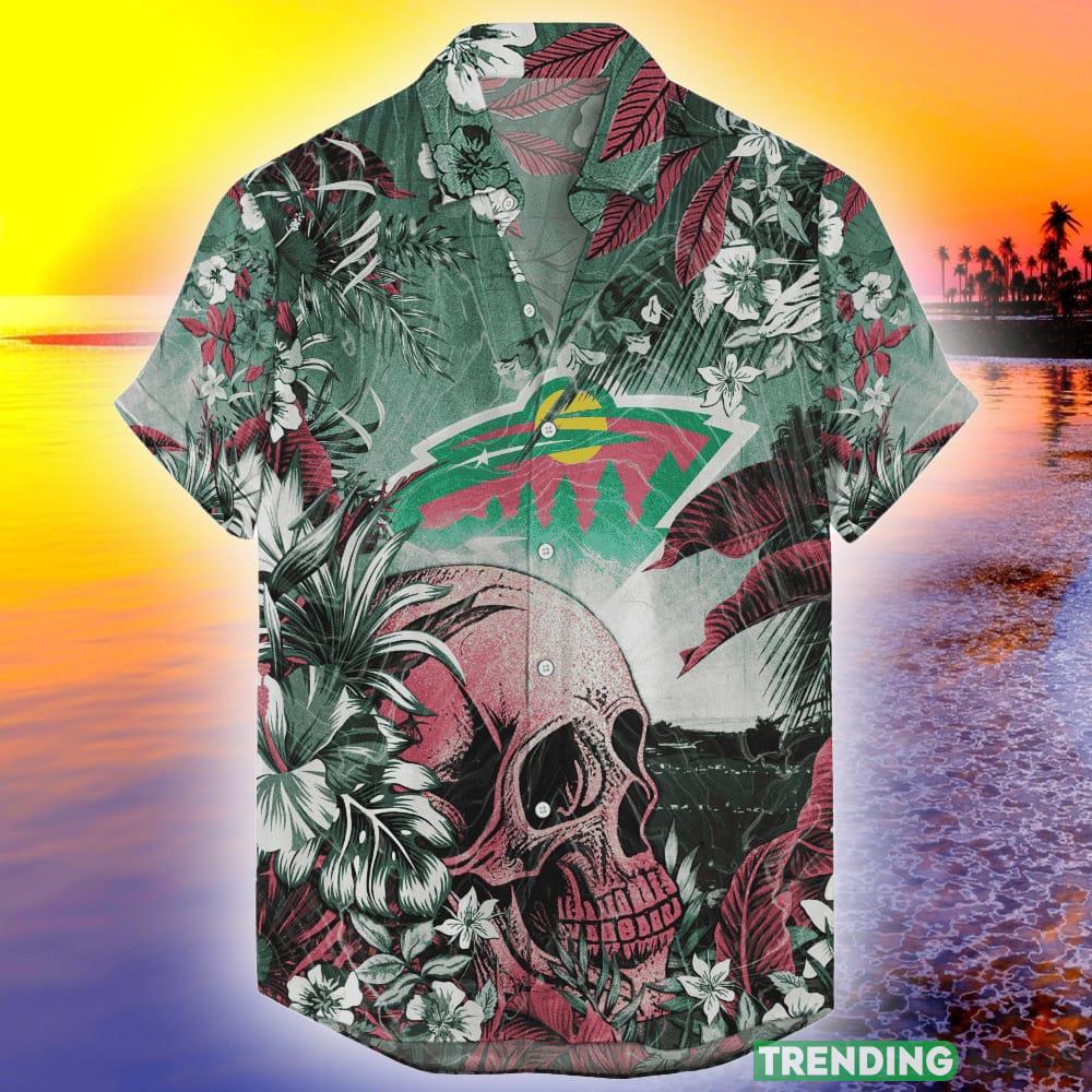 Made with premium quality materials, this shirt offers ultimate comfort and durability. Whether you’re heading out to a game, a party, or simply want to add some flair to your everyday wardrobe, our Minnesota Wild NHL Tropical Skull Hawaii Shirt is the perfect choice.