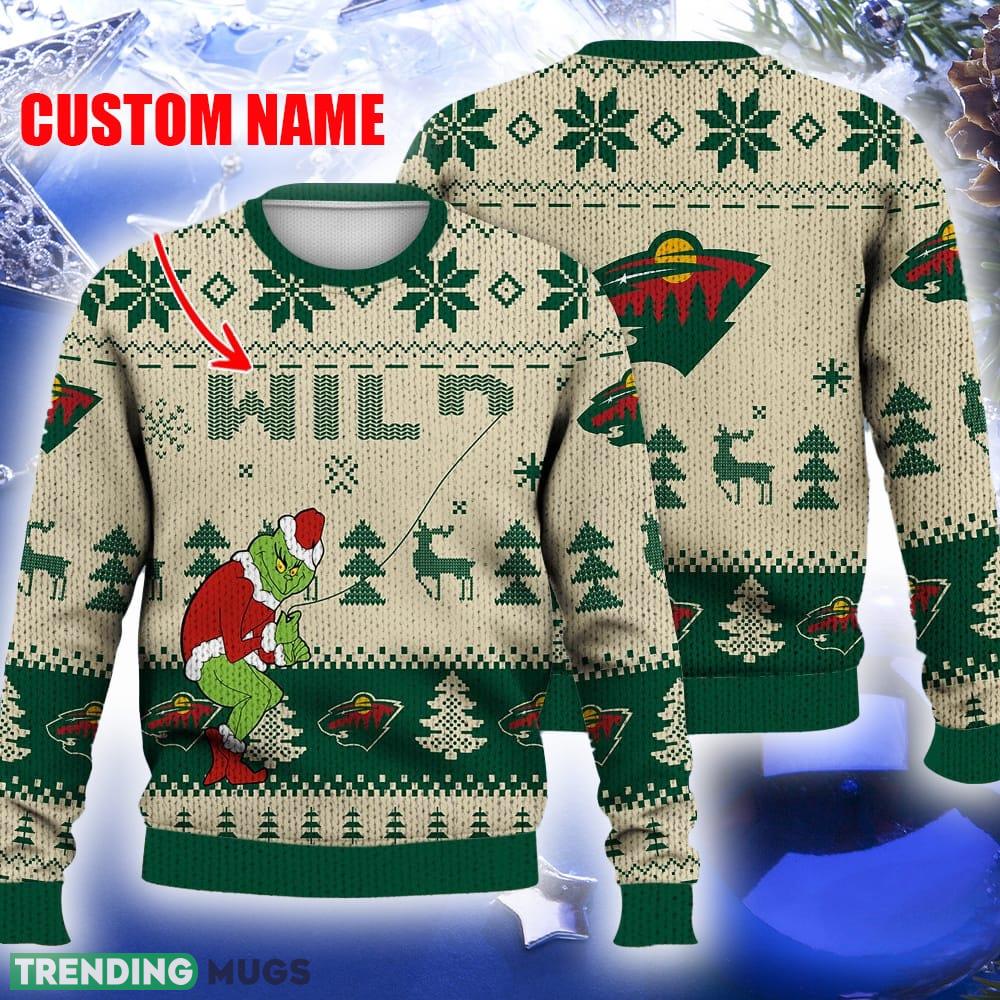 Minnesota Wild Ugly Christmas Sweater Grinch Custom Ice Hockey NHL Gift For Christmas Holidays Custom Name Informations: