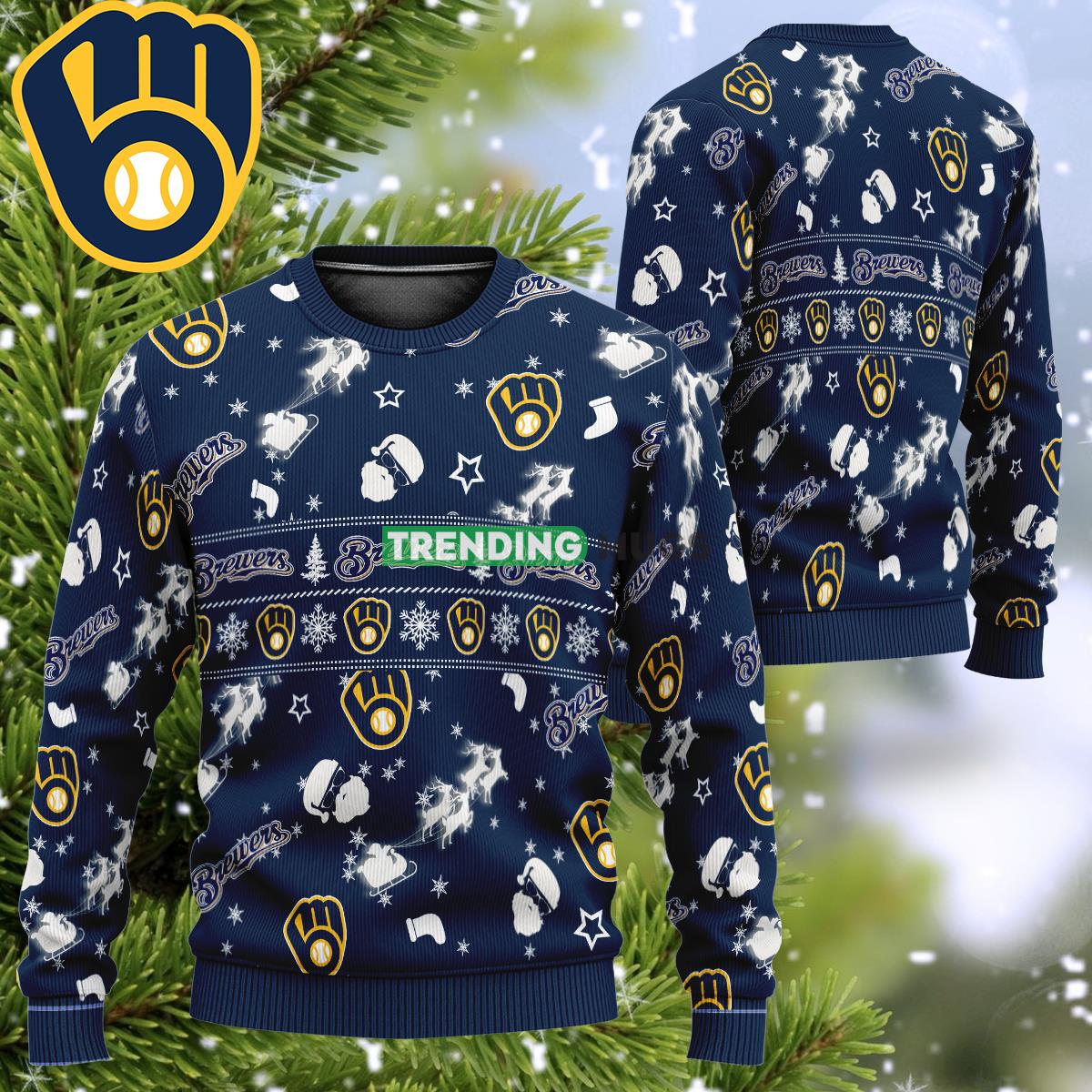 Designed with a unique 3D effect, this sweater features Santa Claus himself riding a reindeer, complete with the iconic Milwaukee Brewers logo. The vibrant colors and intricate details make this sweater a true standout, ensuring you’ll be the life of any holiday party.