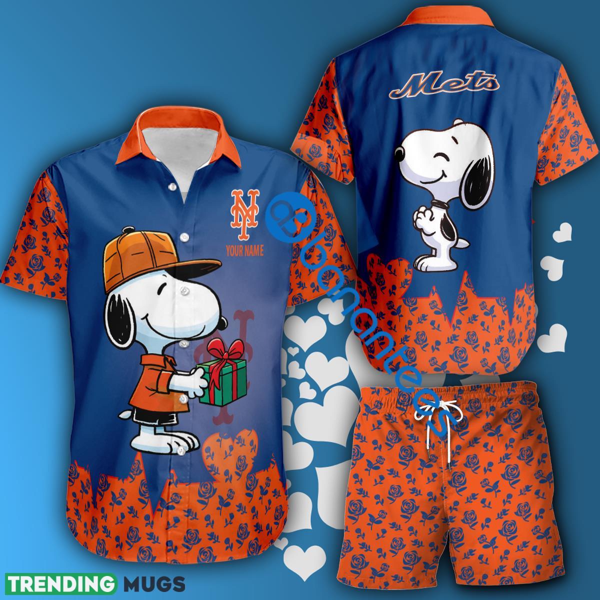But what truly sets this combo apart is the option to customize it with your name! Imagine proudly displaying your love for the Mets and Snoopy while wearing a one-of-a-kind shirt and shorts adorned with your personalized touch. It’s a fantastic gift for yourself or your significant other, adding a touch of personalized flair to your couple’s wardrobe.