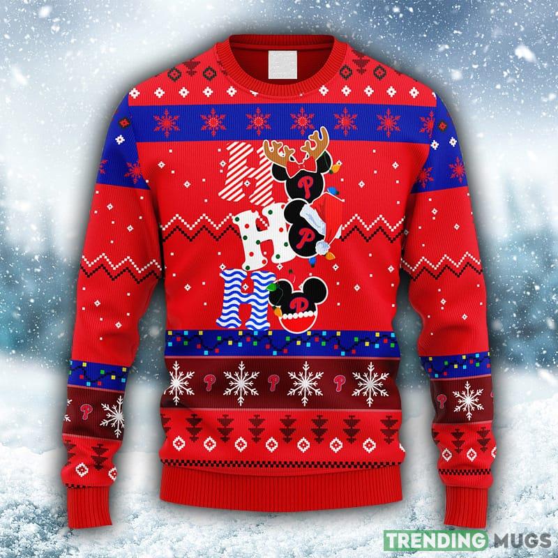 MLB Philadelphia Phillies HoHoHo Mickey Christmas Ugly 3D Sweater For Men And Women Gift Ugly Christmas - MLB Philadelphia Phillies HoHoHo Mickey Christmas Ugly Sweater_1