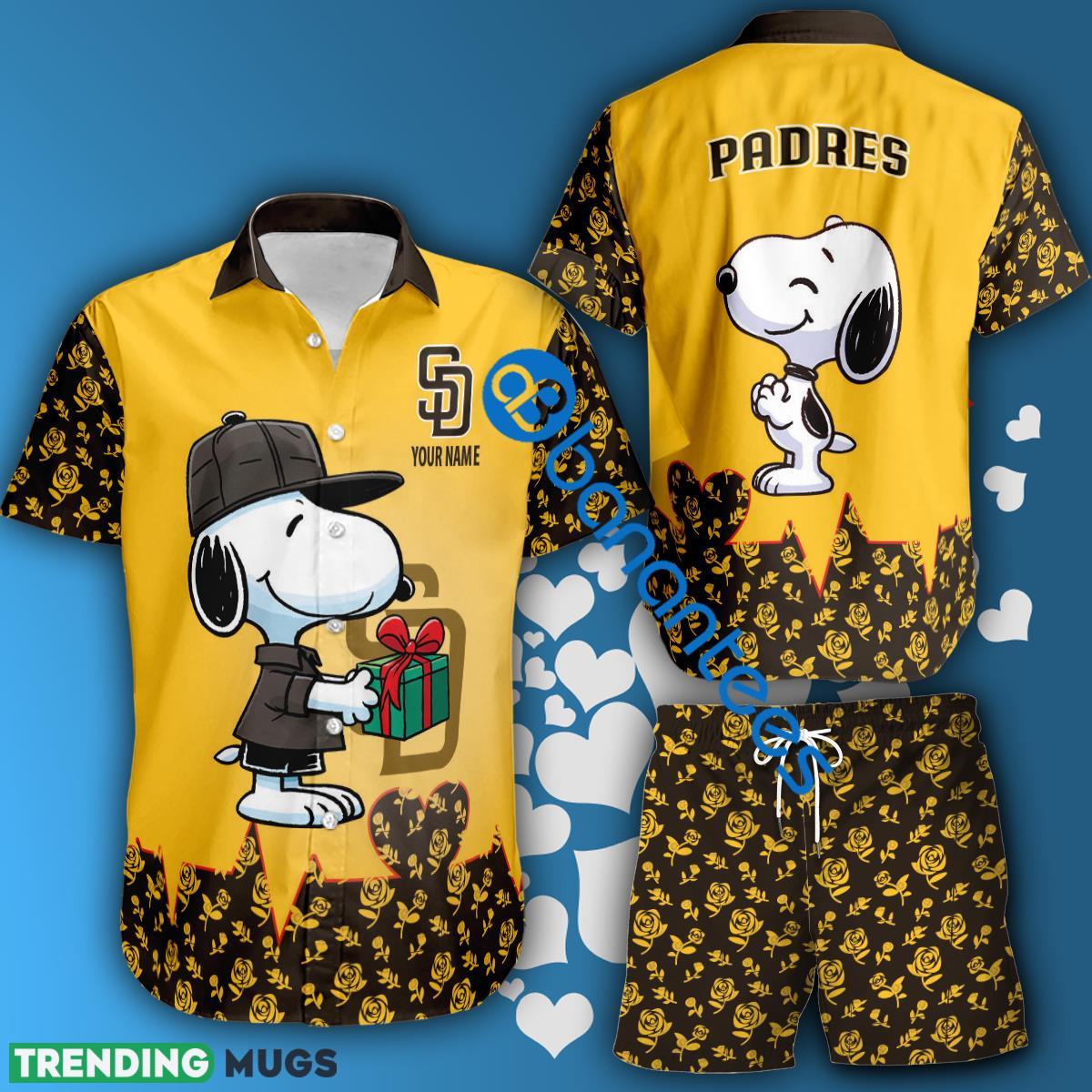 MLB San Diego Padres Snoopy Gift Boyfriend And Girlfriend Hawaiian Shirt And Short Set Custom Name Details: