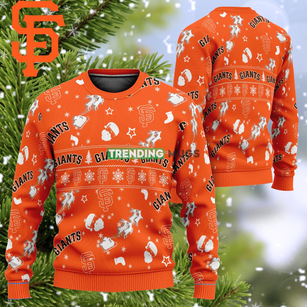 Designed with intricate detailing, this sweater showcases Santa Claus riding a reindeer, all decked out in the San Francisco Giants colors and logo. The vibrant colors and high-quality stitching make this sweater a standout piece during the holiday season.