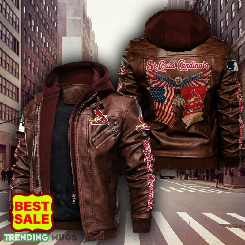 Crafted with care, this jacket features a sleek black and brown leather design that exudes sophistication. The iconic St Louis Cardinals Design 1 logo proudly adorns the chest, showcasing your unwavering support for your favorite baseball team.