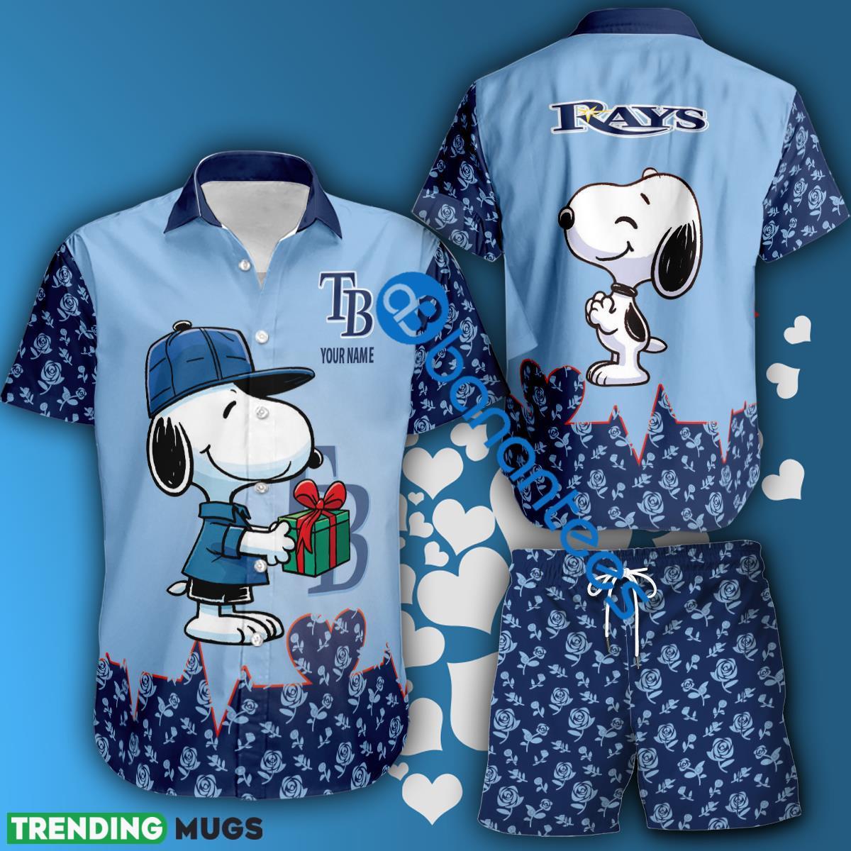 MLB Tampa Bay Rays Snoopy Gift Boyfriend And Girlfriend Hawaiian Shirt And Short Set Custom Name Details: