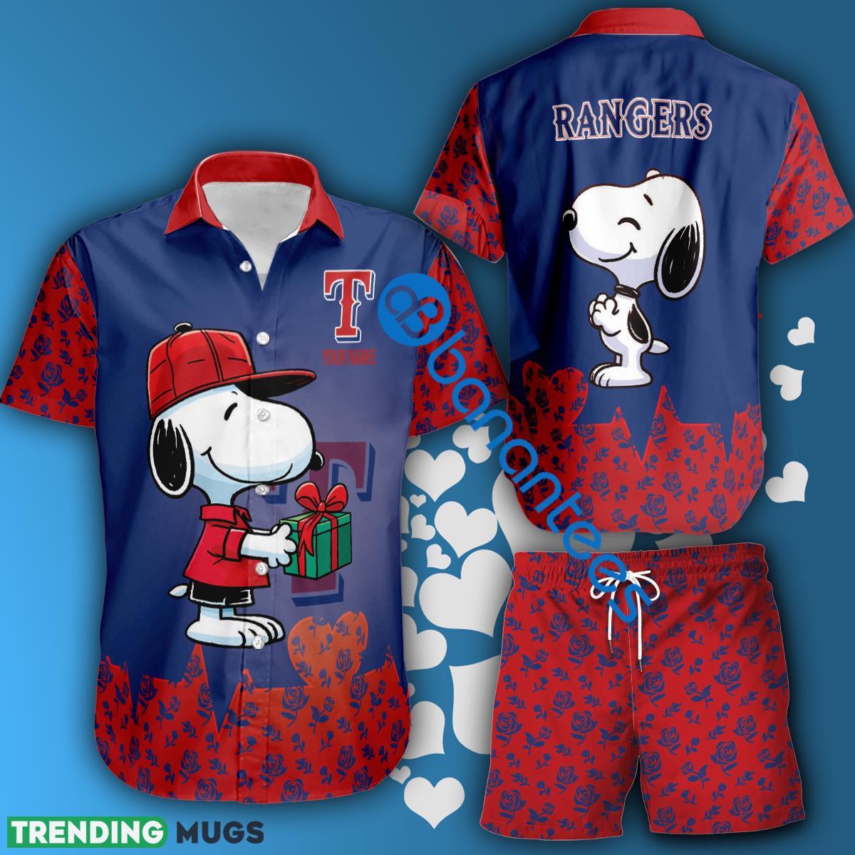 Get ready to show off your love for the MLB Texas Rangers in style with our exclusive Snoopy Gift Boyfriend and Girlfriend Combo Hawaiian Shirt and Short Custom Name!