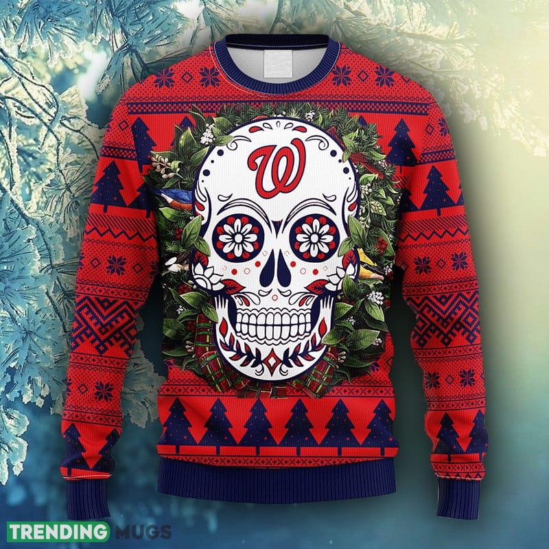MLB Washington Nationals Skull Flower Ugly Christmas Ugly Sweater For Men Women – MLB Washington Nationals Skull Flower Ugly Christmas Ugly Sweater_1