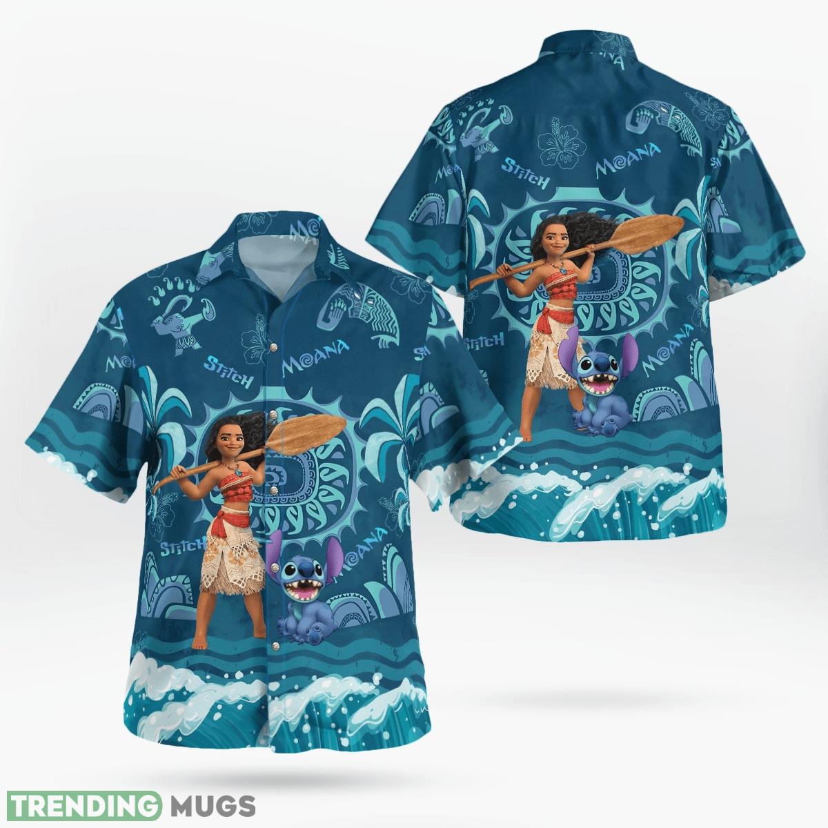 Featuring the beloved characters Moana and Stitch, this Hawaiian shirt adds a playful touch to any outfit. The intricate design showcases the stunning Hawaiian landscape, with palm trees swaying in the breeze and waves crashing along the shore. You’ll feel like you’ve been transported to a tropical paradise with every wear.
