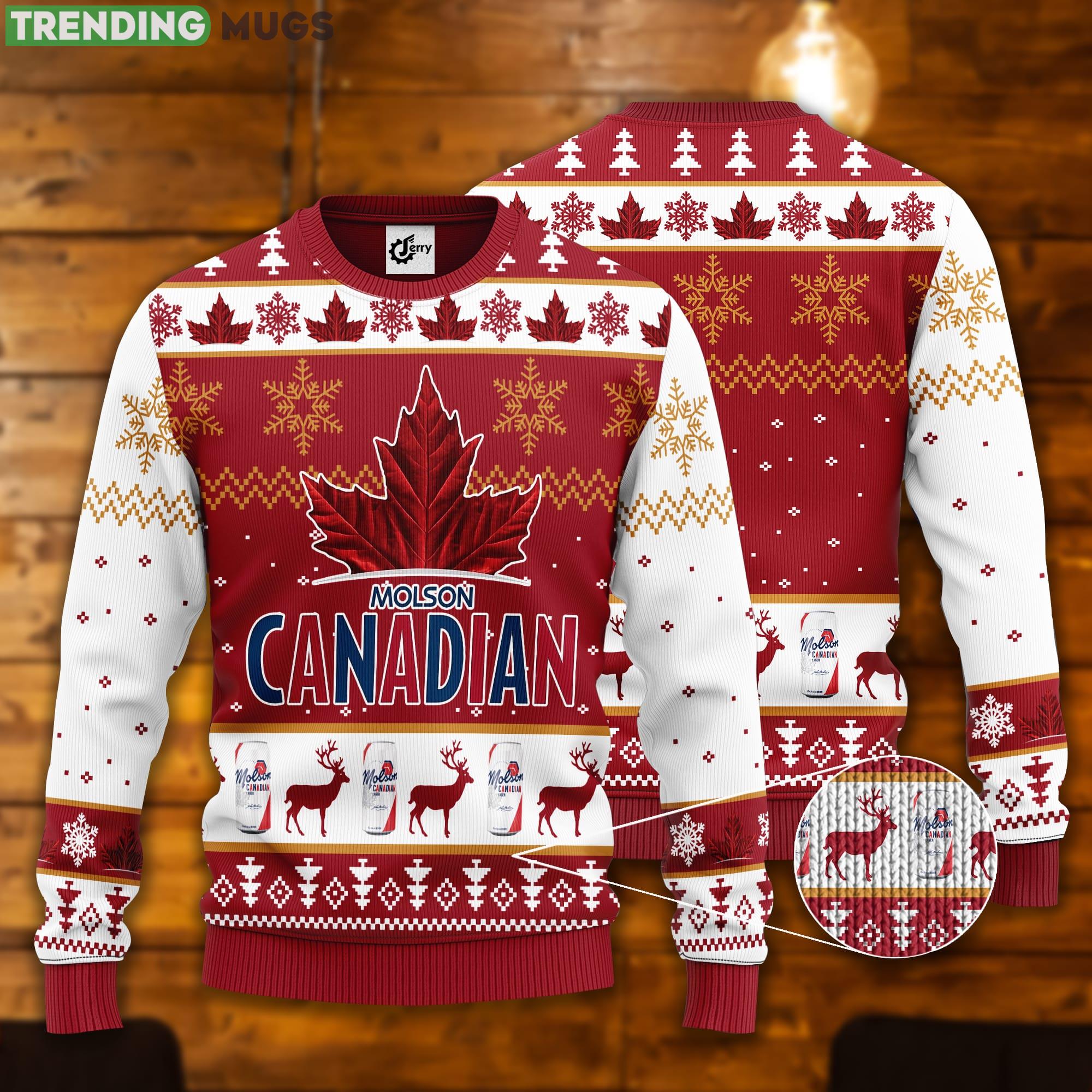 This is the Molson Canadian Ugly Christmas Sweater. It’s the perfect gift for everyone who loves a bit of fun on cold winter days. The sweater is made out of high quality, 100% polyester material and features a festive design with a Molson Canadian logo. It also has a comfortable fit and can be worn for any professional occasion. Order yours today and enjoy a festive, comfortable experience this winter.