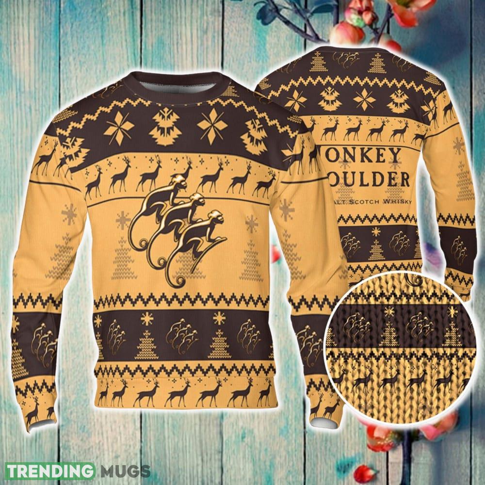 Monkey Shoulder Whiskey Ugly Sweater Pine Trees n Reindeer Beer Loves ugly Gift Christmas Sweater 3D Sweater