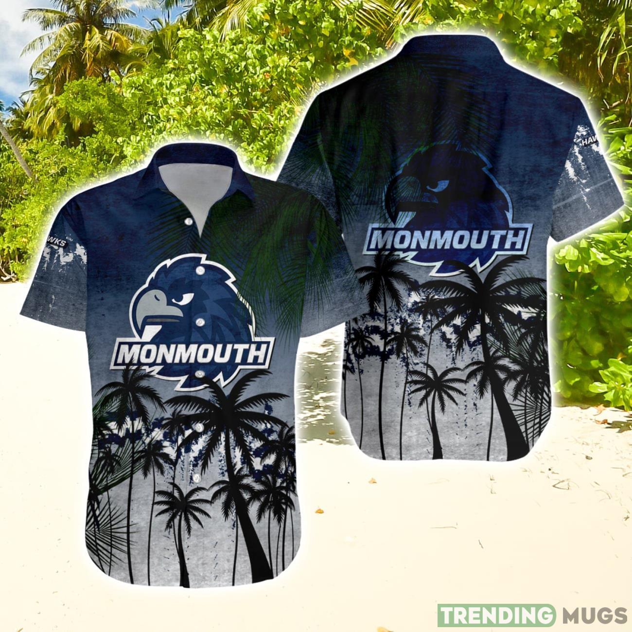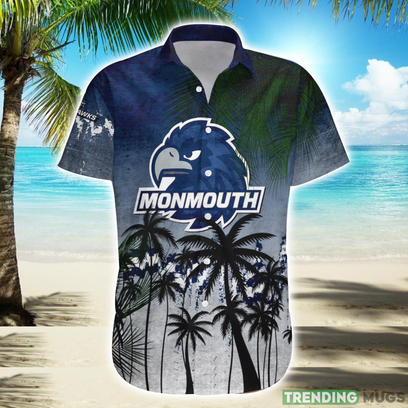 Monmouth Hawks Hawaiian Shirt Summer Gift Coconut Tree Tropical Grunge Pattern For NCAA Fans Details: