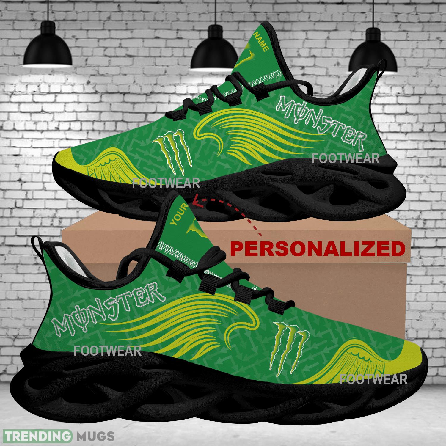 Elevate your style game with the Monster Energy Brand Logo Wings Pattern Max Soul Shoes. These personalized curate sport sneakers are designed for the modern trendsetter who values both comfort and fashion. Featuring the iconic Monster Energy logo and a unique wings pattern, these shoes are sure to turn heads wherever you go. Step out in style and show off your individuality with these must-have sneakers.