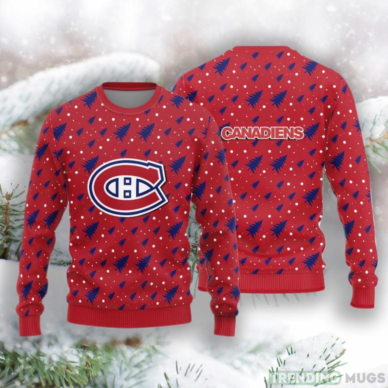 Whether you’re attending a holiday party, cheering on your team at the rink, or simply enjoying the cozy atmosphere at home, our Montreal Canadiens Christmas Pine Tree Patterns Pattern Knitted Sweater is the perfect choice. Spread holiday cheer, celebrate your favorite team, and stay comfortable all season long. Embrace the festive spirit while showcasing your passion for the Montreal Canadiens with this must-have holiday sweater.