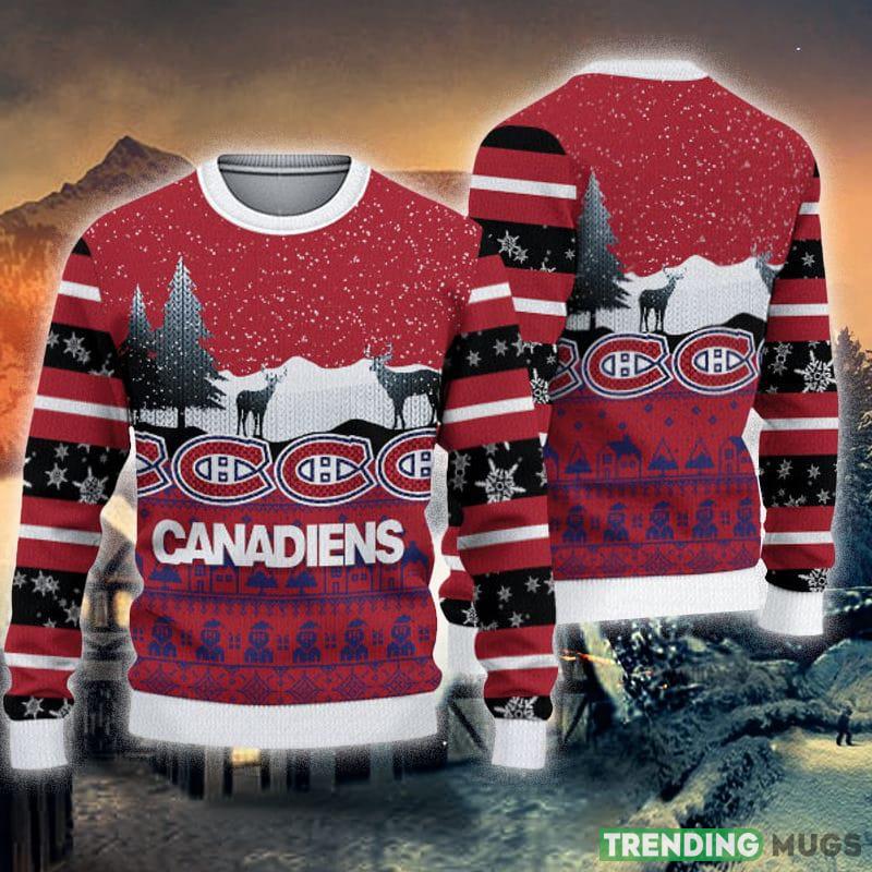 Montreal Canadiens Christmas Reindeers Pattern Knitted Ugly Christmas Sweater AOP Gift For Men And Women Informations: