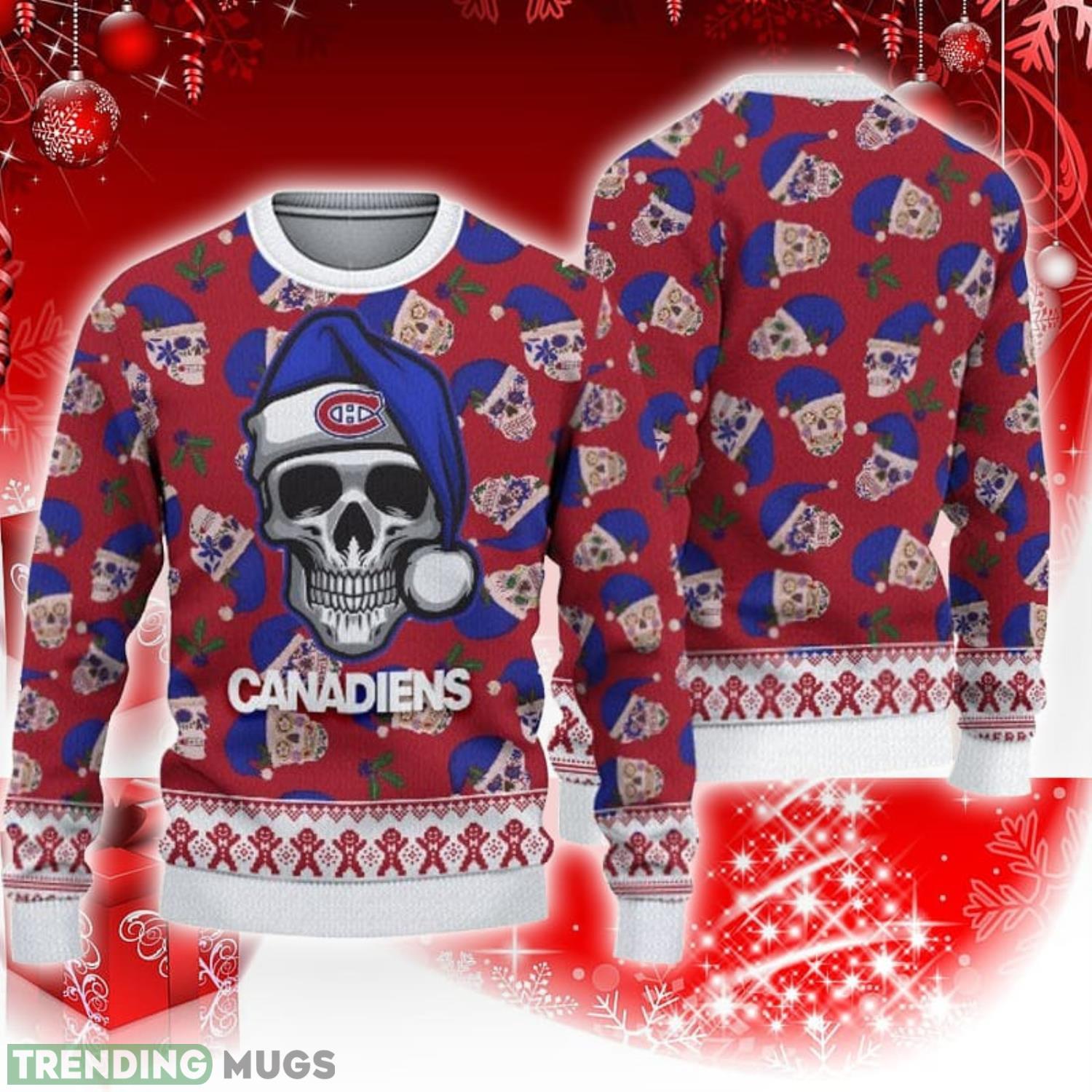 Get into the festive spirit with our Montreal Canadiens Christmas Skull Pattern 3D Sweater! This unique and eye-catching sweater is the perfect Christmas gift for any die-hard Montreal Canadiens fan.