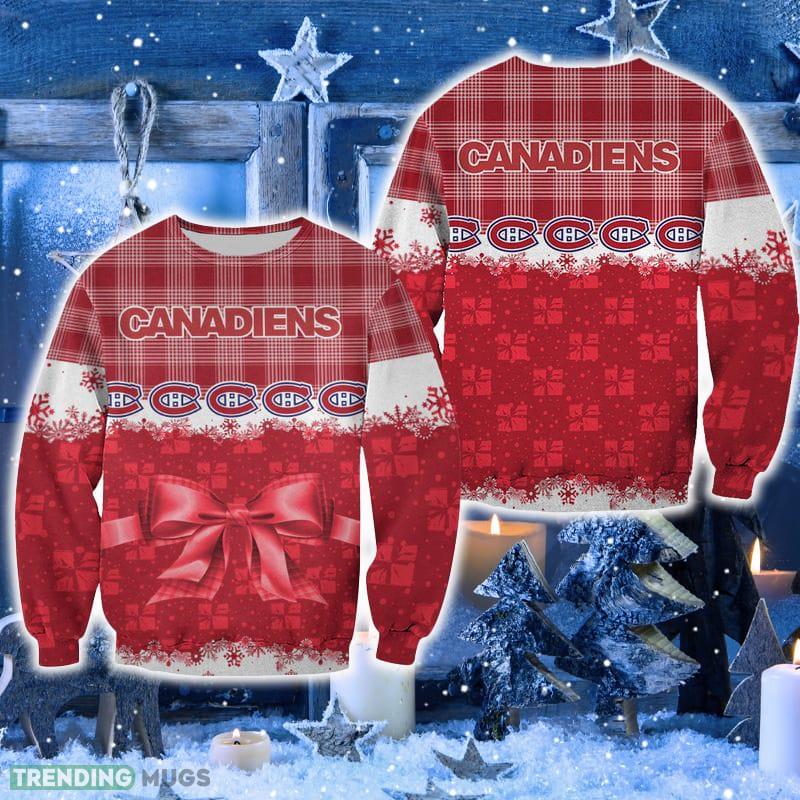 Designed with a charming snowman cookie pattern, this sweater combines the joy of Christmas and the passion for the Montreal Canadiens. The vibrant red and white colors mirror the team’s iconic jersey, making it an ideal attire for cheering on your favorite hockey team during the holidays.
